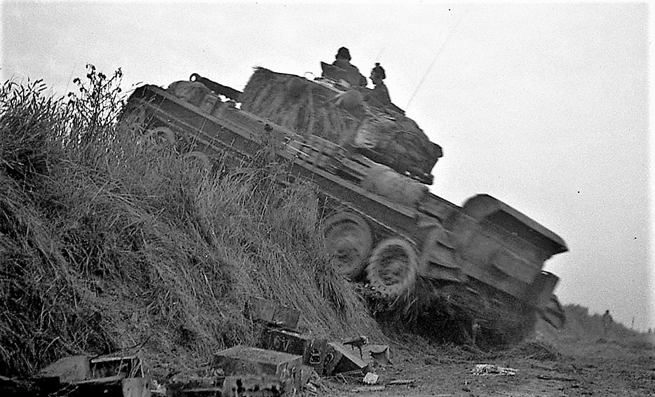 Cromwell Tank moving into position for an attack south of Caen, France, June 1944.