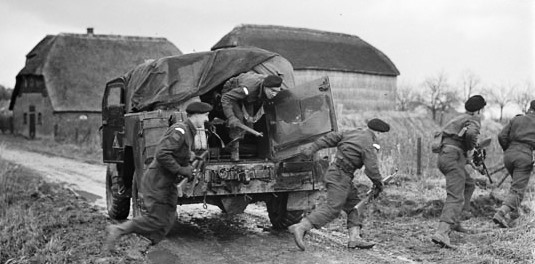 Troopers of a Canadian armoured brigade getting out of a new General Motors Canada C15TA Armoured Truck near Nijmegen, Netherlands, 5 December 1944