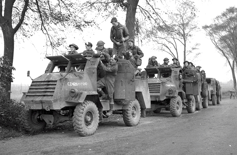 Infantrymen of The Royal Hamilton Light Infantry in General Motors C15TA armoured trucks, Krabbendijke, Netherlands, 27 October 1944.