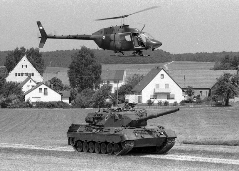 Bell CH-136 Kiowa, 444 Sqn, over 4 CMBG Leopard, Ex Reforger 79, Germany, 5 June 1979.