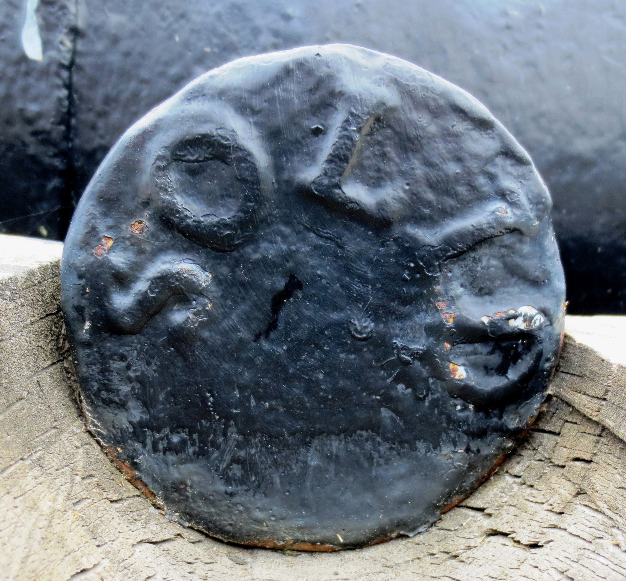 French Cast Iron possible 1-pounder Smoothbore Muzzleloading Gun, heavily corroded early 18th century, mounted on a wood naval gun carriage inside the Museé de la Gaspésie.