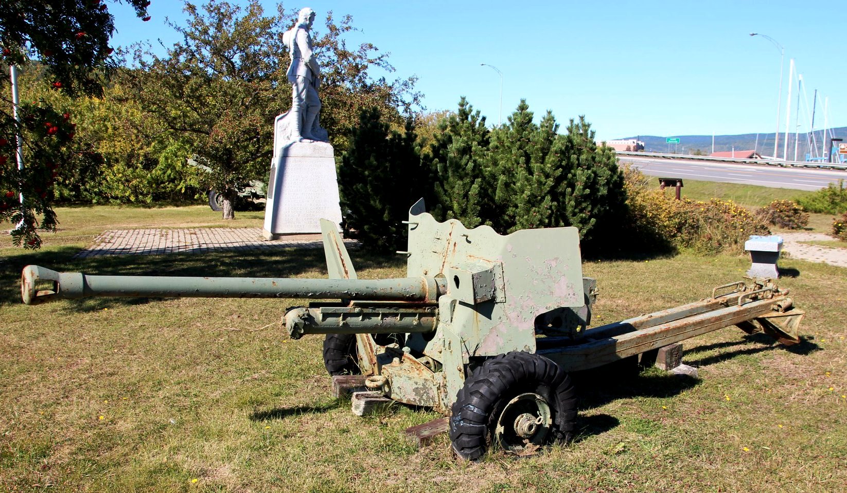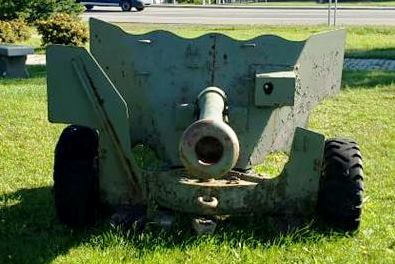 6-pounder 7-cwt QF Anti-Tank Gun, No. 2 beside the war memorial in a Community Park. There were two anti-tank batteries from the Gaspé region during the Second World War, the 82nd AT Battery and the 80th Field Battery (one later became the 57th Battery).