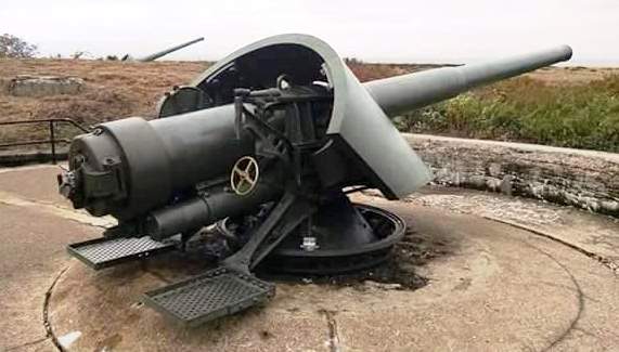 Gun platform previously used for a BL 10-inch M1888 Gun No. 7, mounted on Disappearing Carriage No. 22. A second BL 10-inch M1888 Gun No. 36 mounted on M1893 Barbette Carriage No. 9 was also present. Both guns were scrapped.