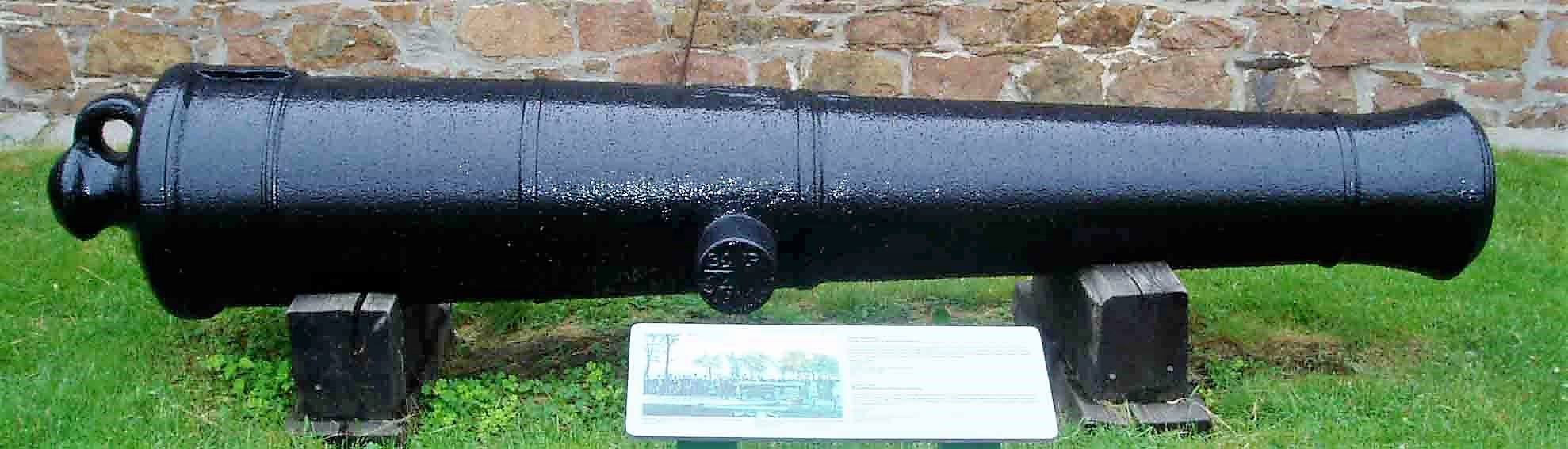 Blomefield Cast Iron 24-pounder 50-cwt Smoothbore Muzzleloading Gun, mounted on an iron garrison carriage.