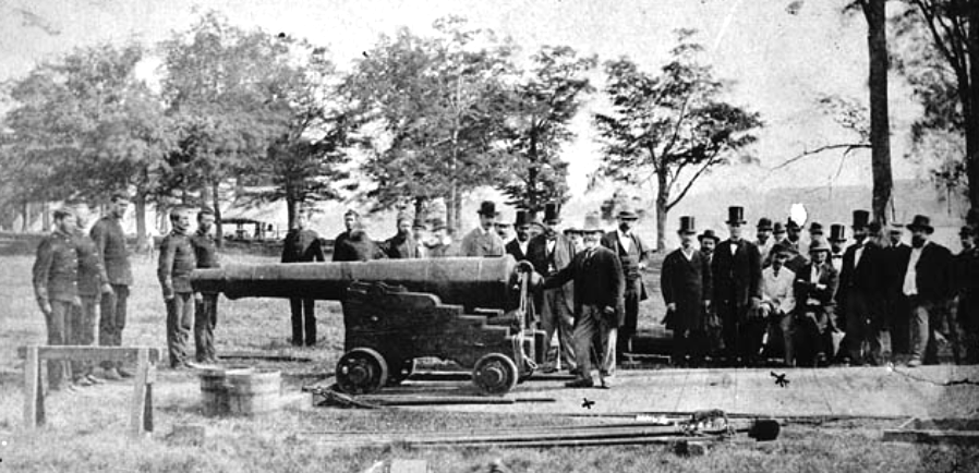 This appears to be the same gun. Found in LAC records, it is described as a “test proof of the first wrought iron gun barrel made in Canada,” E.E. Gilbert & Sons, Canada Engine Works, St. Helen’s Island, Montreal, Quebec, August 30, 1879. Stephen Summerfield notes that the gun appears to be fitted with a bore extender so that the gun barrel wall would not be damaged upon discharge. Nicholas Hall noted that this Blomefield contains the visible wrought iron barrel, perhaps comparable to the British Palliser conversion for cast iron guns.