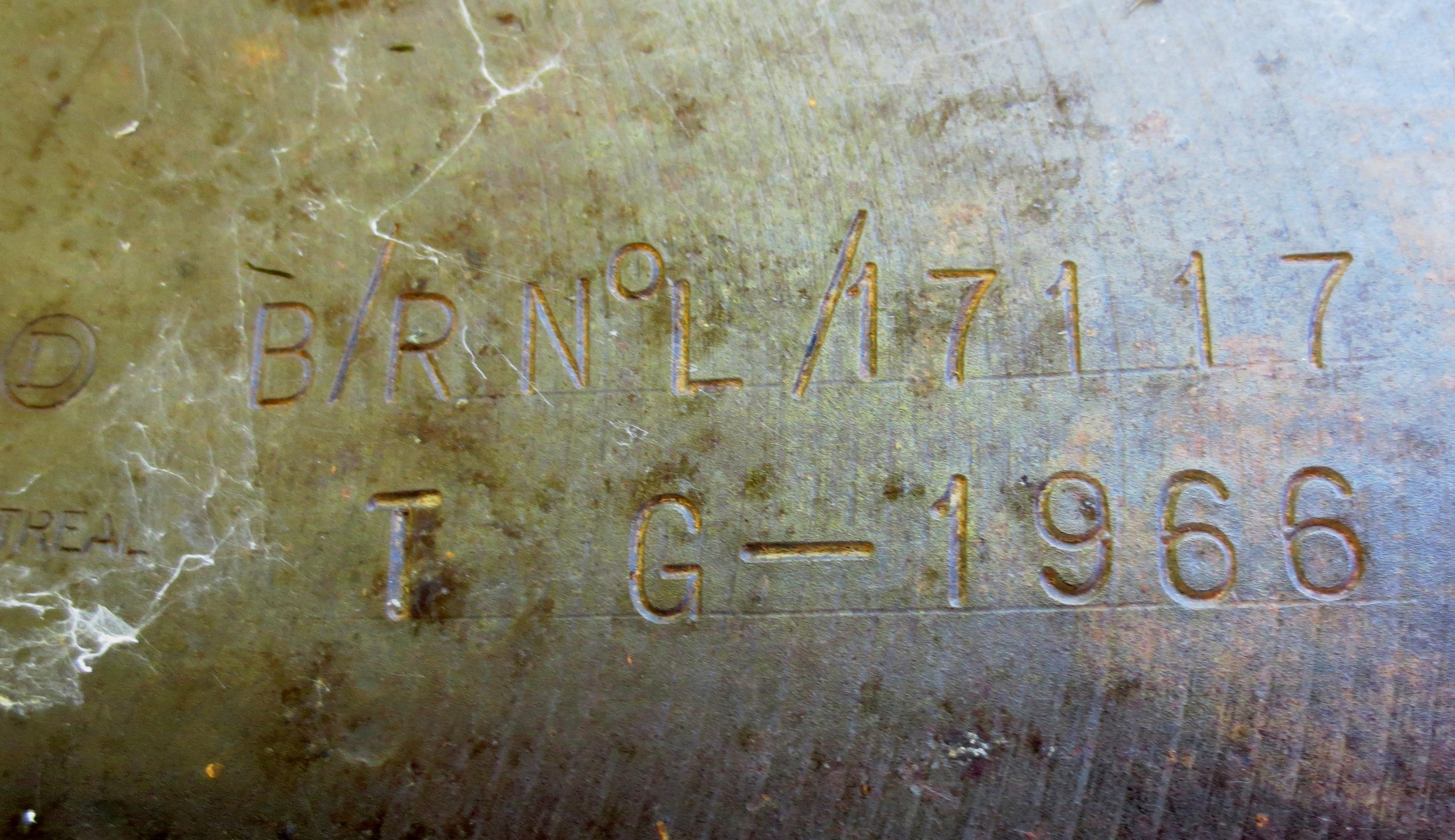 Pour cette bouche à feu, seuls le calibre et les dimensions peuvent nous guider, puisque aucun marquage n’est visible. Le canon fait 6 pieds et 7 pouces de long, pour un calibre de plus ou moins 3,5 pouces. Dans l’artillerie britannique, ce calibre correspondrait au canon de 5 livres et quart, dont le boulet devait faire environ 3,34 pouces. Si nos calculs sont exacts et qu’il s’agit bien de ce canon, force est de constater qu’on ne peut aller plus loin; en effet, Mc Connell (1989) ne fait que mentionner ce canon, pour dire qu’il demeure une énigme et que ce calibre avait disparu au milieu du XIXème siècle. Cette rare information est d’autant plus inexplicable que l’auteur mentionne du même souffle un canon de bronze et un de fer pour ce calibre, sans autre précision. Étrange aussi que l’artillerie britannique possède un canon de 4 livres, un de 5 livres et quart ( qui nous intéresse) et un de six livres, tous calibres assez proches, alors que la pièce de quatre livres et celle de six livres pouvaient sans doute remplir les mêmes fonctions. Une possibilité serait que ce canon, qui ne possède pas de monogramme royal, soit une pièce plus ancienne ayant été conservée dans l’inventaire britannique, car certains canons coulés sous le règne de la reine Anne (1702- 1714) en sont exempts (Mc Connell 1989 : 97). Cette hypothèse n’explique cependant pas que des exemplaires en bronze et en fer aient survécu en assez grand nombre pour figurer dans l’inventaire de l’ordonnance britannique en 1825. Une autre explication pourrait être que ce canon non-identifié soit une prise de guerre, mais il ne s’agit que d’une supposition en l’absence d’autres éléments. Si on se base sur les dimensions des canons de 6 livres, le canon dont il est question ici devait sans doute peser autour de 1500-1600 livres.