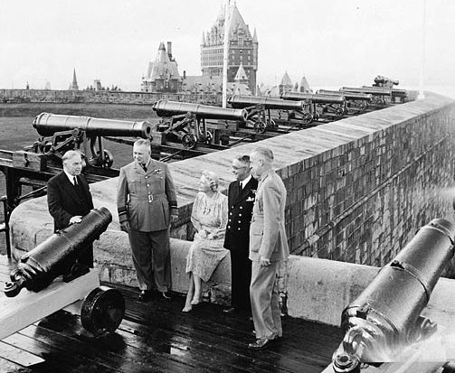 Prime Minister William Lyon McKenzie King, Prime Minister Winston Churchill, and President Franklin Delano Roosevelt with the Earl of Athlone, Governor General of Canada, during the Quadrant Conference. The 1943 Quebec Conference was a secret military conference between the American, British, and Canadian governments held at La Citadelle.