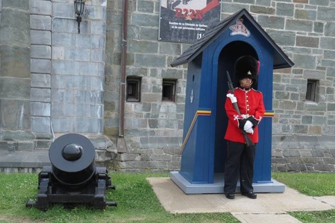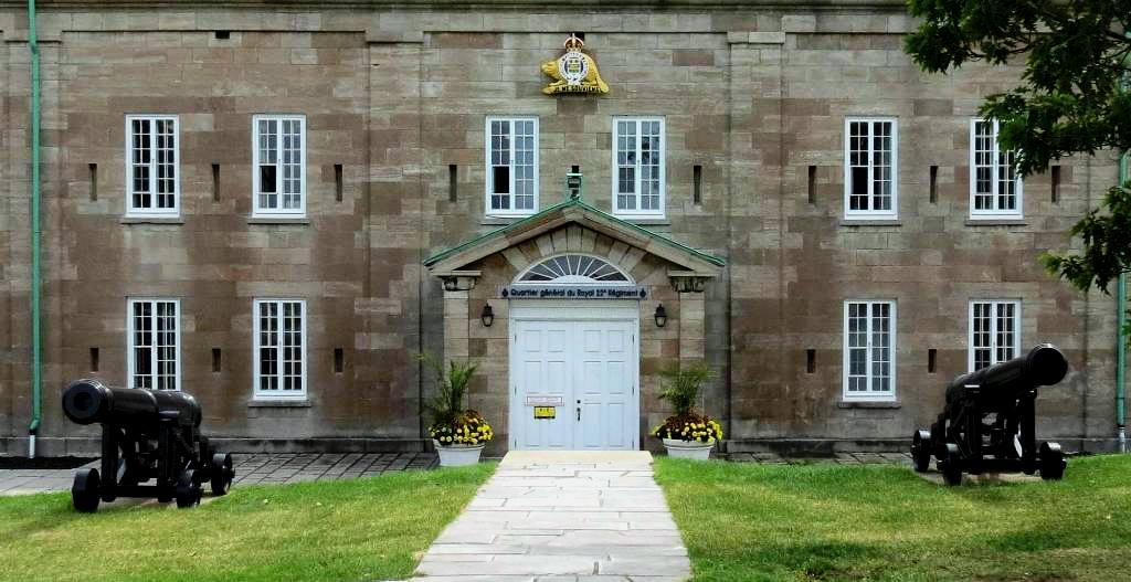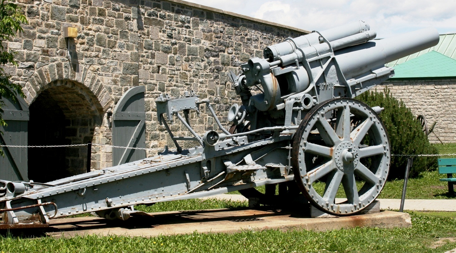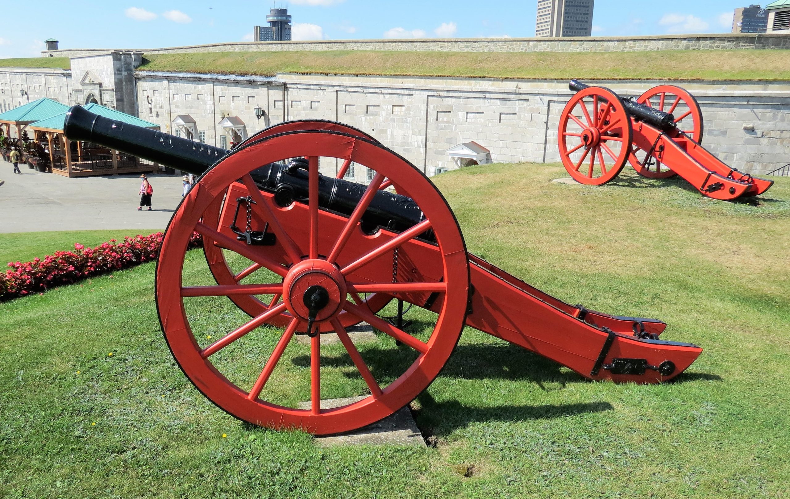 Deux canons se tiennent devant le quartier général du R22eR à l’intérieur de la Citadelle.