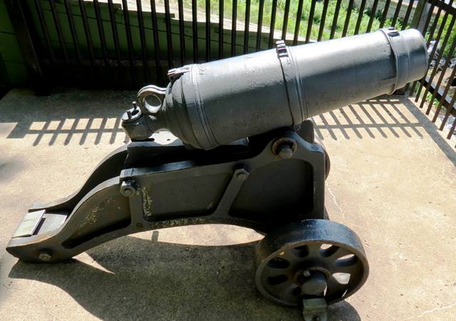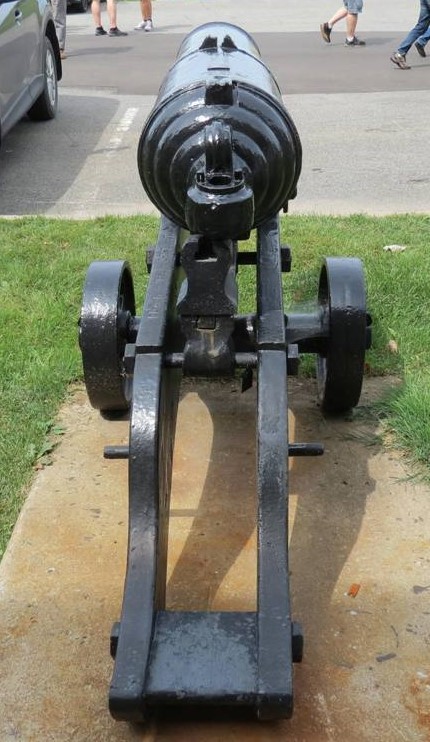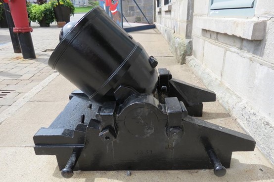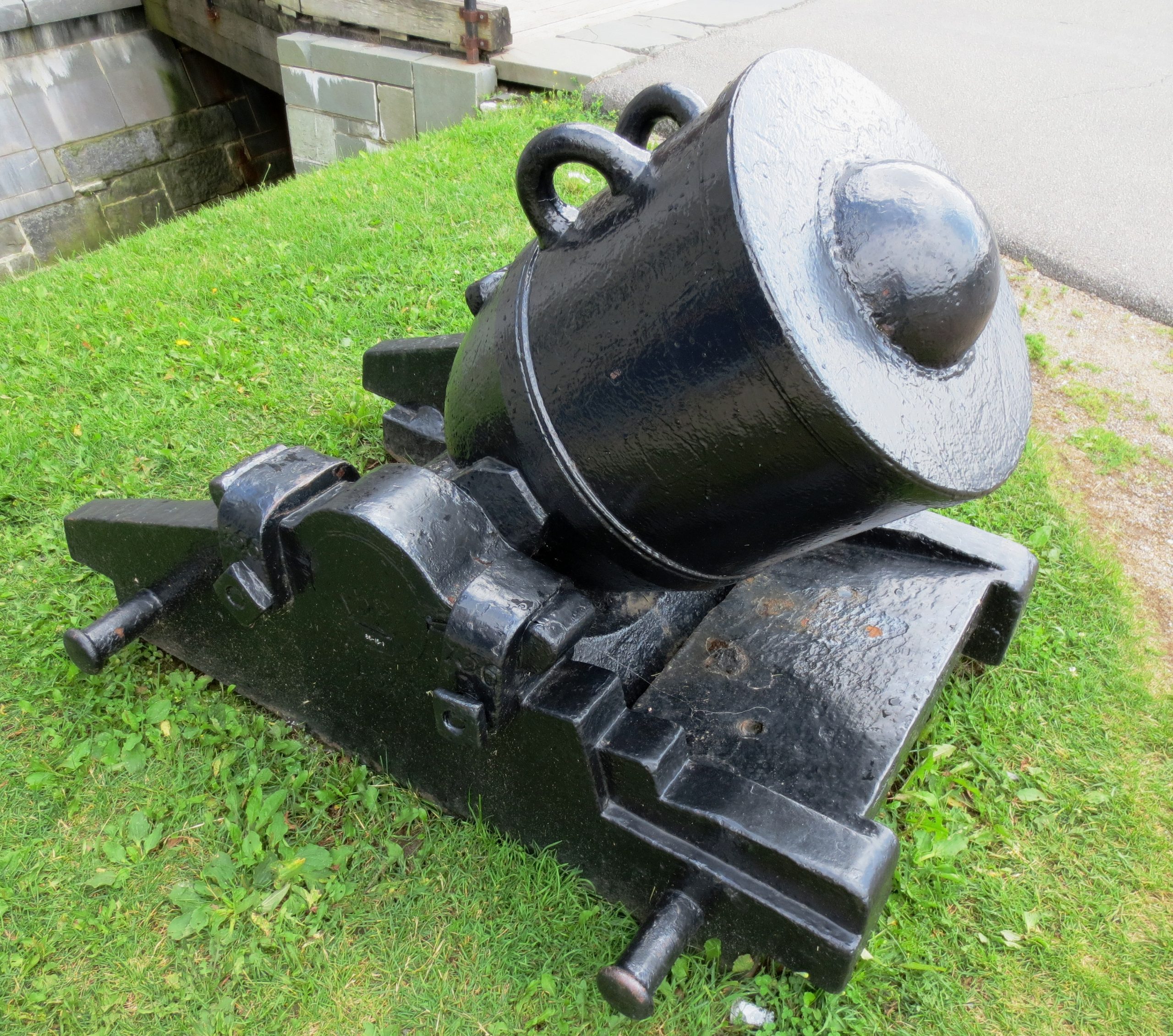 Cast Iron 10-inch 16-cwt Smoothbore Muzzleloading Land Service Mortar, weight 16-1-11 (1,831 lbs), (Serial No. 156). No. 2 of 2, set near the guard house at the inside entrance to the Citadel.