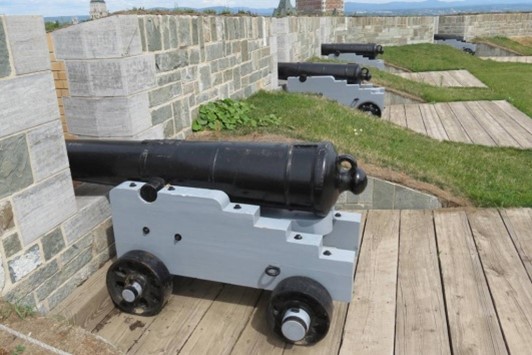 Cast Iron Smoothbore Muzzleloading Guns arrayed along the King’s Bastion on the Northeast corner of the Citadel.