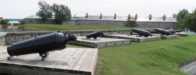 Des canons à chargement par muzzl à âme lisse en fonte disposés le long du Bastion du Roi, à l’angle nord-est de la Citadelle.