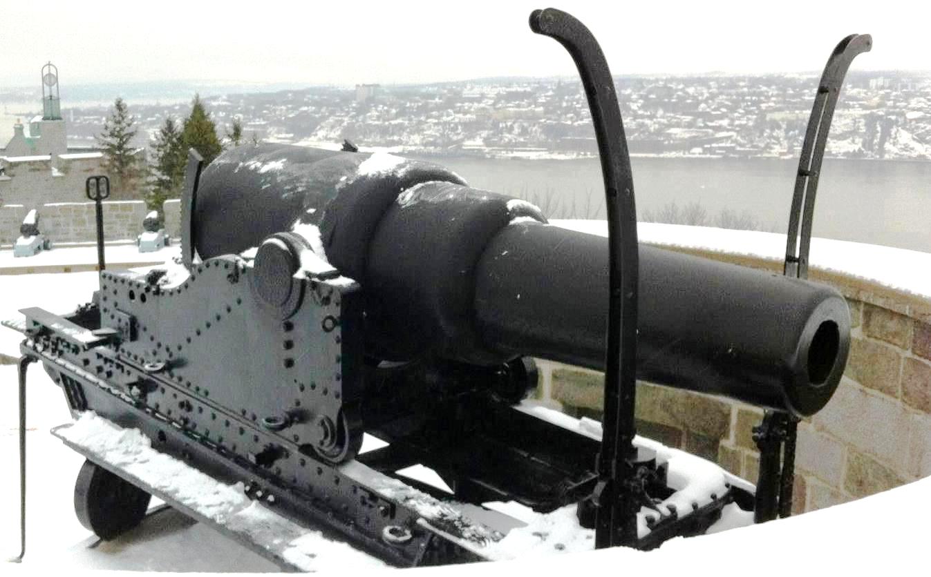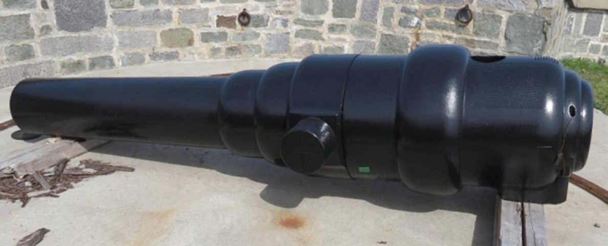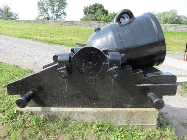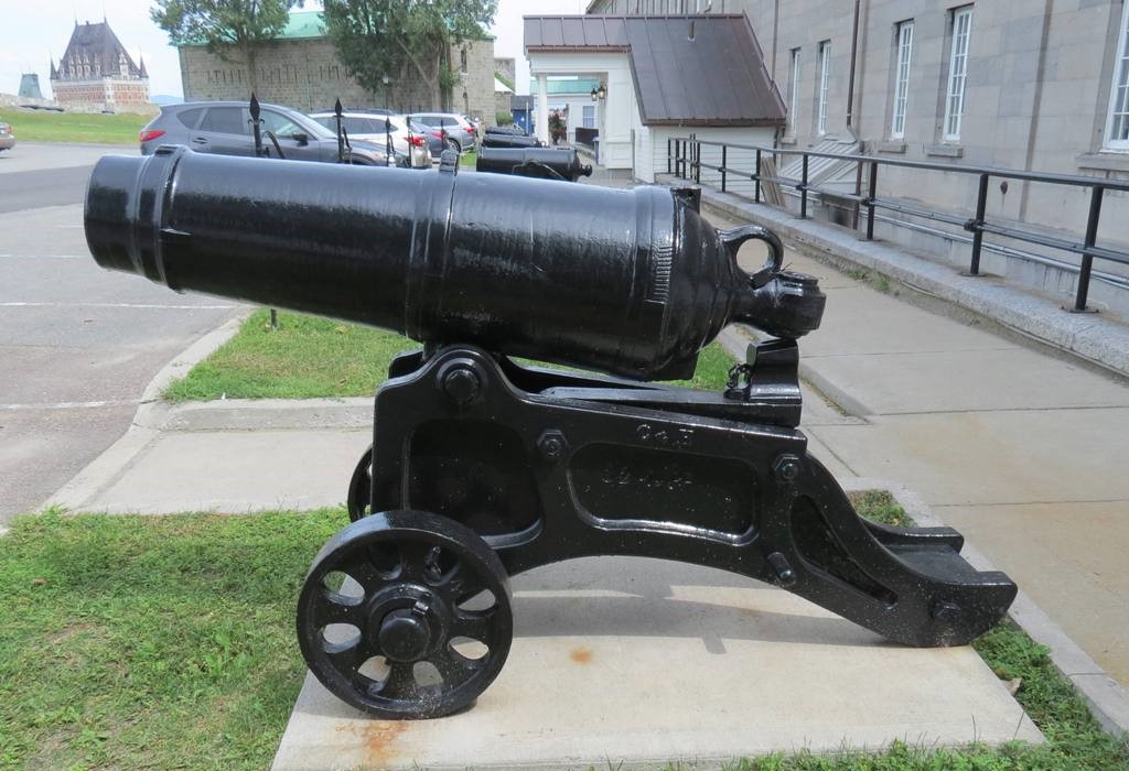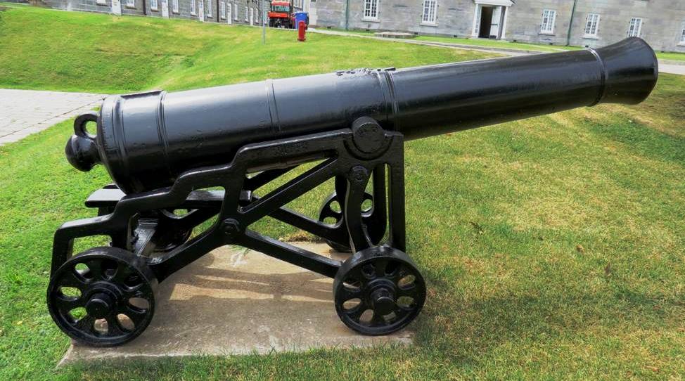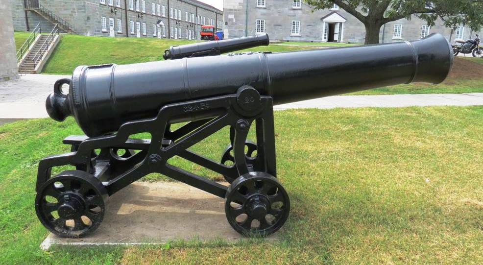 Blomefield Cast Iron 24-pounder 50-cwt Smoothbore Muzzleloading Gun, weight unknown (>5,000 lbs), Samuel Walker & Company of Rotherham, England (WCo) on left trunnion, (240) on right trunnion, la Citadel, Quebec.