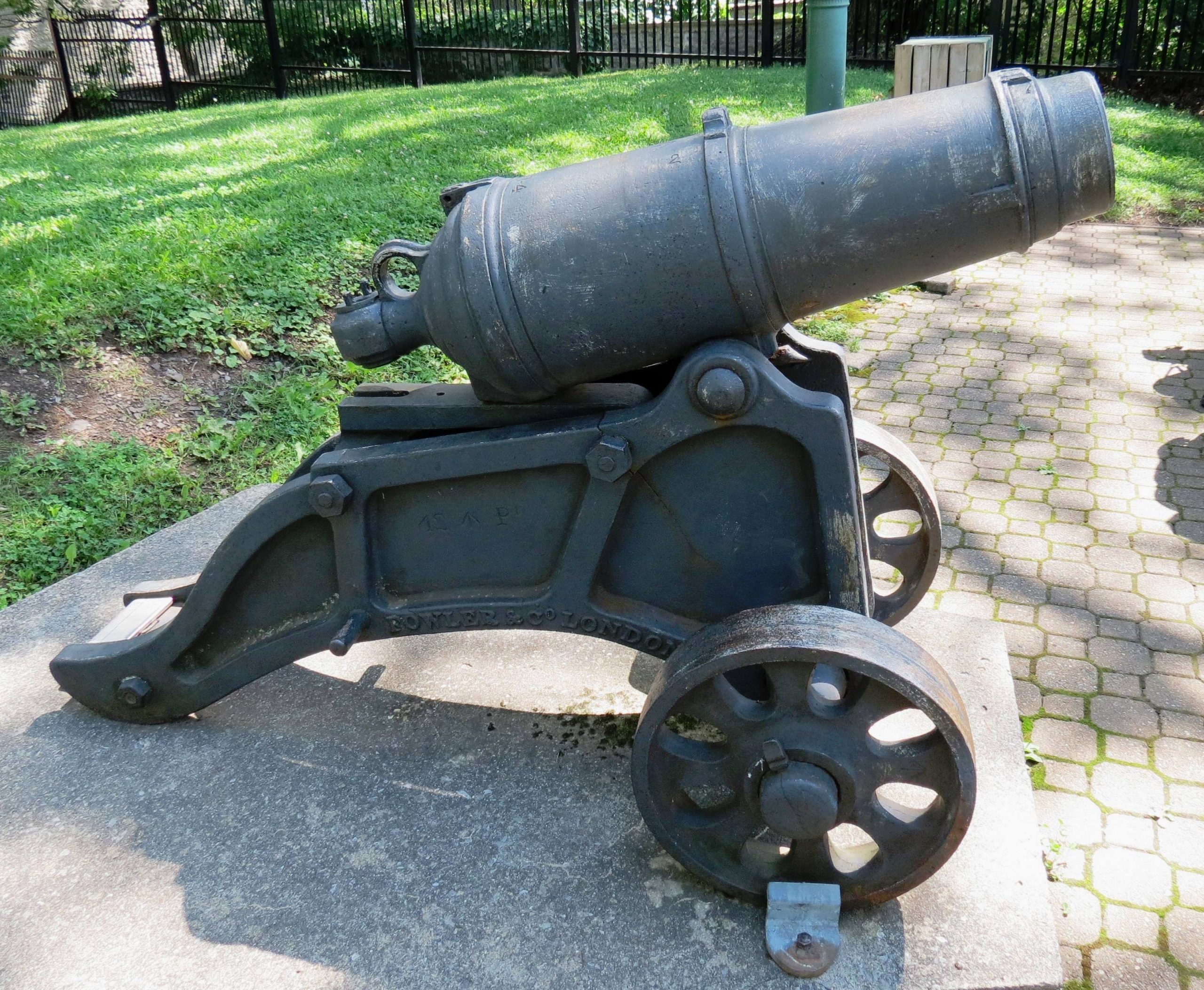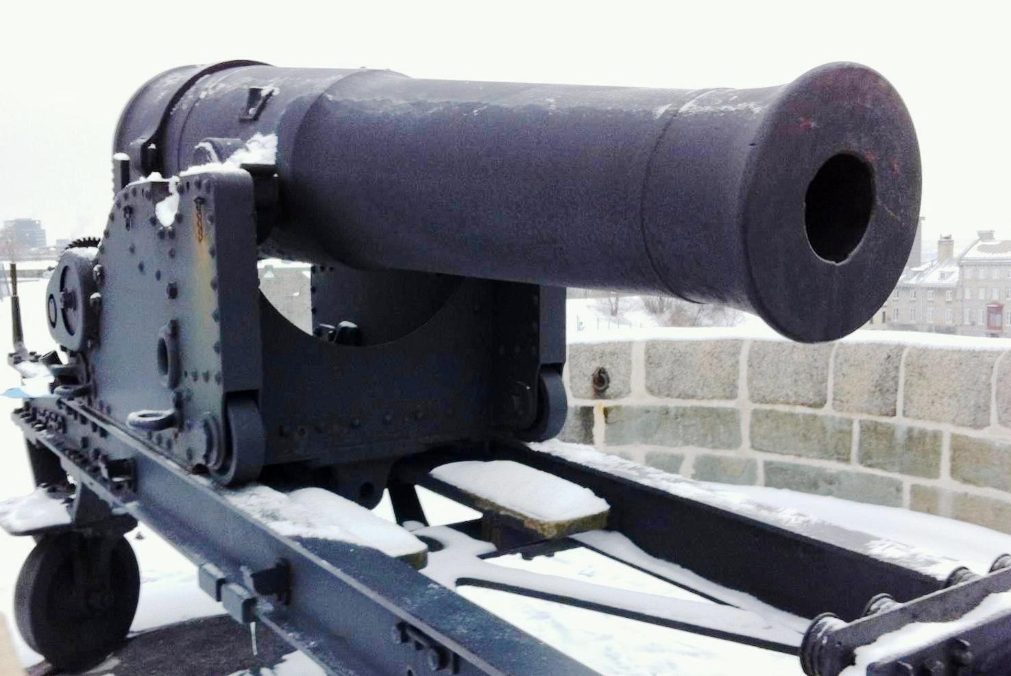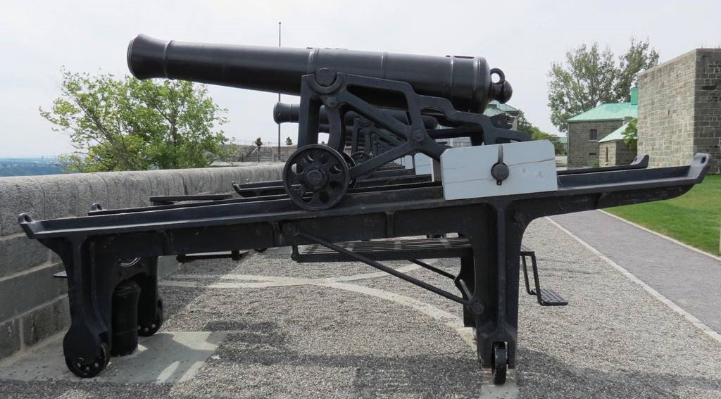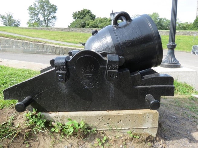 Blomefield Cast Iron 24-pounder 50-cwt Smoothbore Muzzleloading Gun, weight unknown (>5,000 lbs), Samuel Walker & Company of Rotherham, England (WCo) on left trunnion, (240) on right trunnion, la Citadel, Quebec.