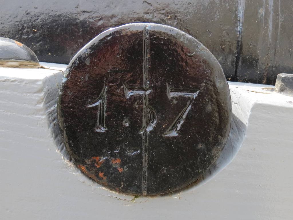 Carronade de 32 livres, poids de 17-0-7, no 4 – Pos. no 3 de 5 – Mur Sud-Ouest et sans chariot.