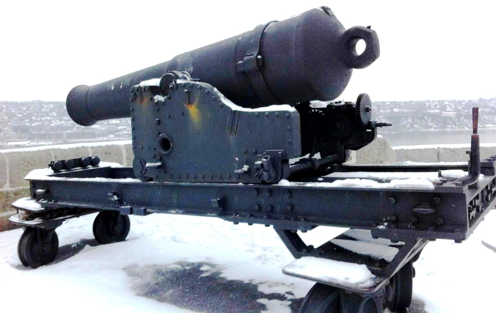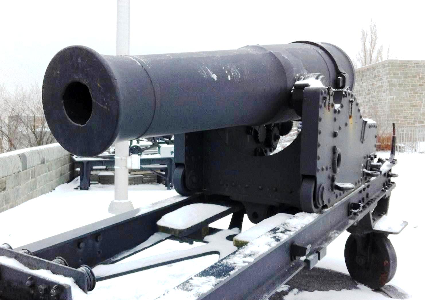 In 1879, a report to Parliament noted that Sir William Palliser had donated a 7-inch and 8-inch gun to the Dominion “converted to his system”. The 1894 inventory records a 7-inch 68-pounder and an 8-inch 68-pounder at Quebec – both cast iron converted (i.e. SBML to RML) guns. Not to be confused with the RBL 7-inch Gun made by Armstrong, at Quebec, or the RML 7-inch 6.5 ton Gun at Esquimalt. There is an issue with this data, in that the 68-pounder 95 cwt calibre 8.12-inch gun was converted to the Palliser 80-pounder 7-ton calibre 6.3-inch gun – all the Palliser conversions were to 6.3 inch calibre so they could fire the 32-pounder SB ammo, although the shells were not interchangeable. One of these is at Quebec today. The conversions were all from the 95-cwt gun – Owen 1879. This could account for the 8-inch 68-pounder. Doug Knight.