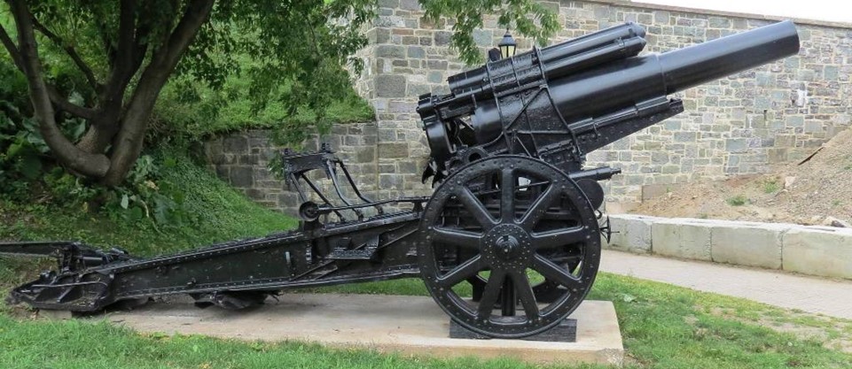 There aren’t very many of these 21-cm Mrs 10s left in the world. Of the three that survive in Canada, there is this 1916 model in the Quebec Citadel, another 1910 model in Battlefield Park, Quebec City Park) and a 1910 model in the Canadian War Museum in Ottawa, Ontario.