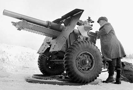 105-mm C1A1 M2A2 Howitzer, CDN No. unknown. On the rampart above the 21-cm Mörser.