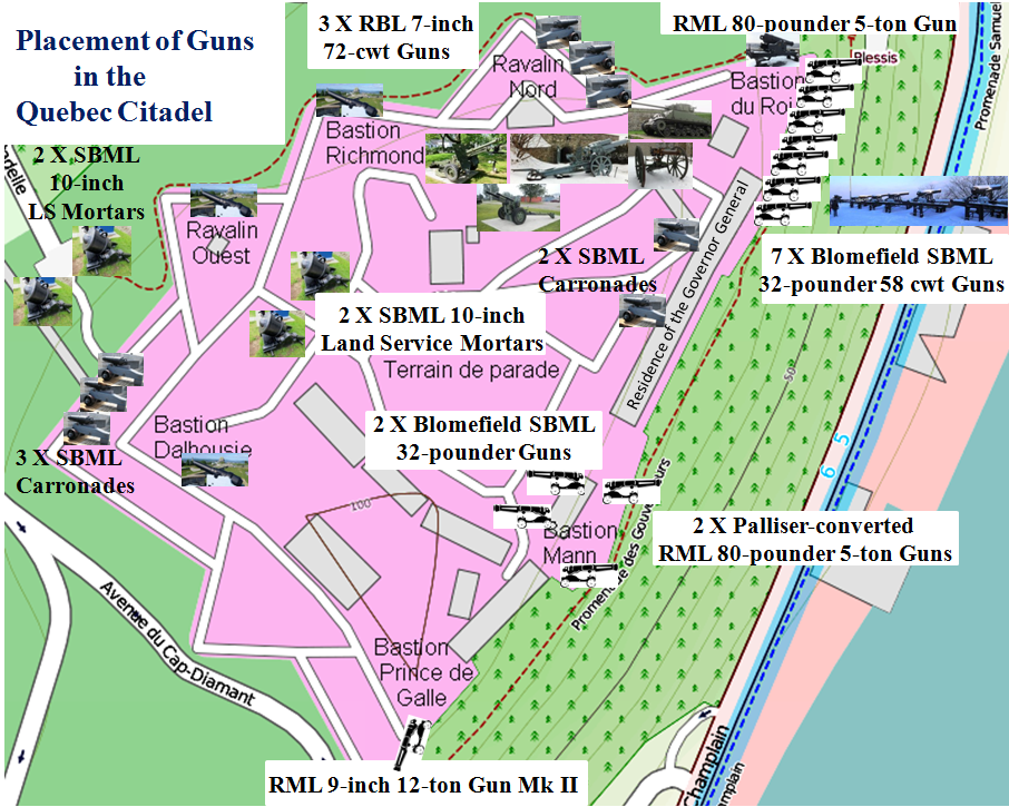 La Citadelle de Québec, diagram showing the placement of large guns on display.
