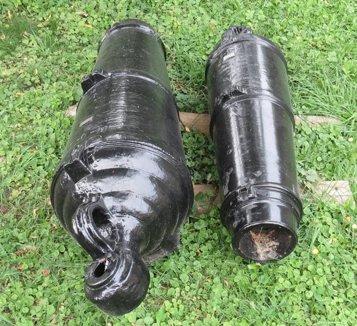 Two Cast Iron 10-inch 16-cwt Smoothbore Muzzleloading Land Service Mortars stand in front the inside entrance to the Citadel.