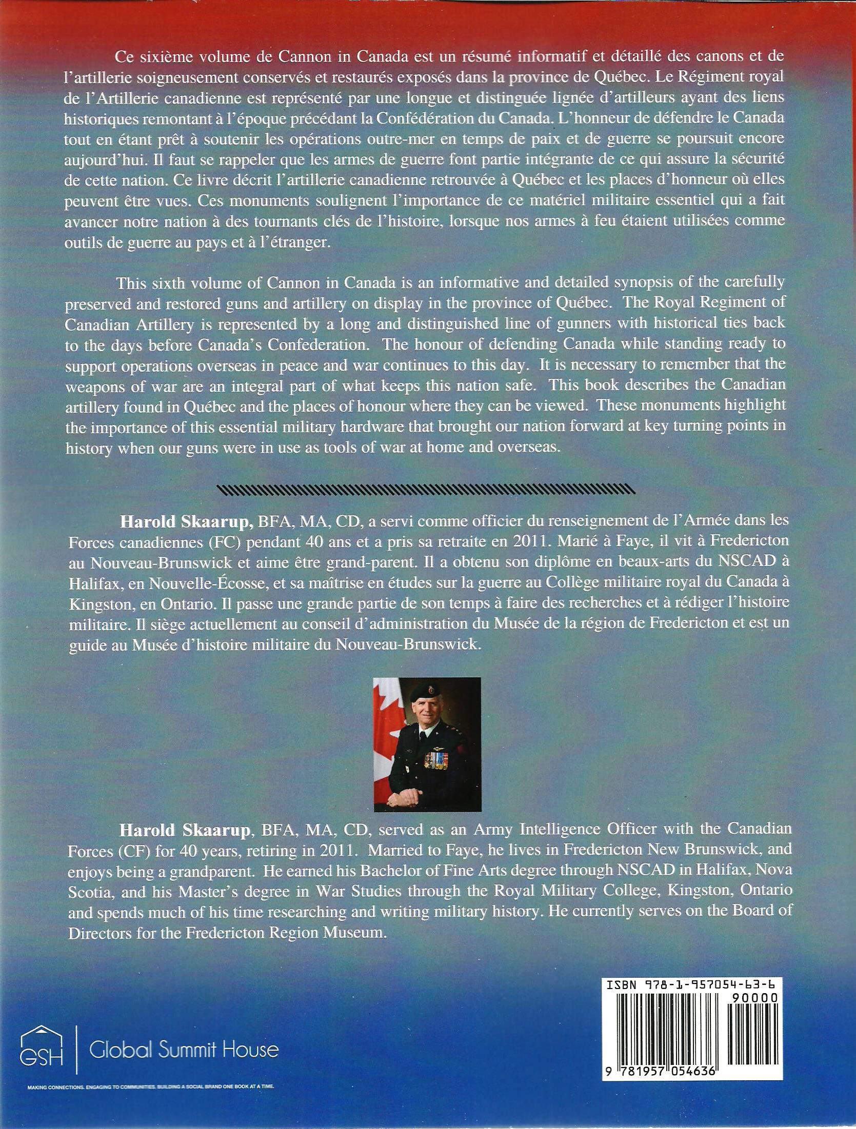 En tant qu’officier de l’armée dans les Forces canadiennes, j’ai eu le privilège d’avoir servi aux côtés d’un grand nombre d’hommes et de femmes militaires hautement professionnels de notre pays tout en participant à des entraînements en Allemagne, au Royaume-Uni et aux États-Unis et lors de déploiements opérationnels dans Chypre, Bosnie-Herzégovine et en Afghanistan. Au cours de ma formation et de mon développement professionnel militaire, j’ai beaucoup appris sur notre longue histoire militaire. Mon intérêt pour notre dossier historique à multiples facettes m’a amené à écrire à ce sujet et à rechercher les histoires sur les militaires et les femmes militaires du Canada et les outils et l’équipement qu’ils ont utilisés pour préserver notre sécurité lorsque les nuages de guerre ont assombri nos horizons.Les conservateurs, les docents et les bénévoles travaillant dans les musées militaires du Canada ont réussi à conserver un bon nombre d’armes de guerre militaires à la retraite et beaucoup sont toujours recherchés et, dans certains cas, sont de nouveau en état de fonctionner. En tant qu’artiste, photographe et passionné d’histoire militaire, j’ai essayé de garder une trace de l’endroit où l’équipement militaire canadien historique a survécu et se trouve actuellement et de mettre cette information à la disposition d’autres personnes ayant le même intérêt. Pour ceux qui sont du même avis, le but de ce manuel est de fournir une simple liste de contrôle de l’artillerie classique de la Grande Guerre et de la Seconde Guerre mondiale qui fait partie de notre héritage militaire et un guide de localisation pour les trouver au Canada. Le livre comprend un certain nombre de photographies pour illustrer un exemple de chaque arme à feu dans la mesure du possible, et énumère les emplacements des survivants par province.