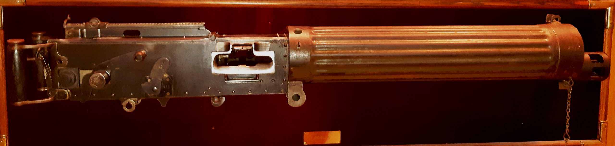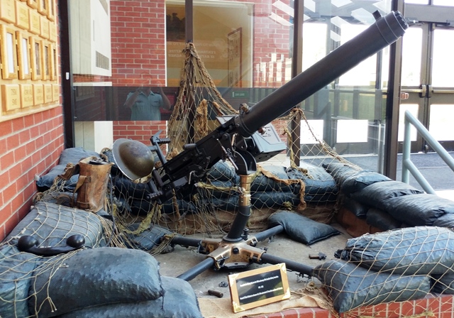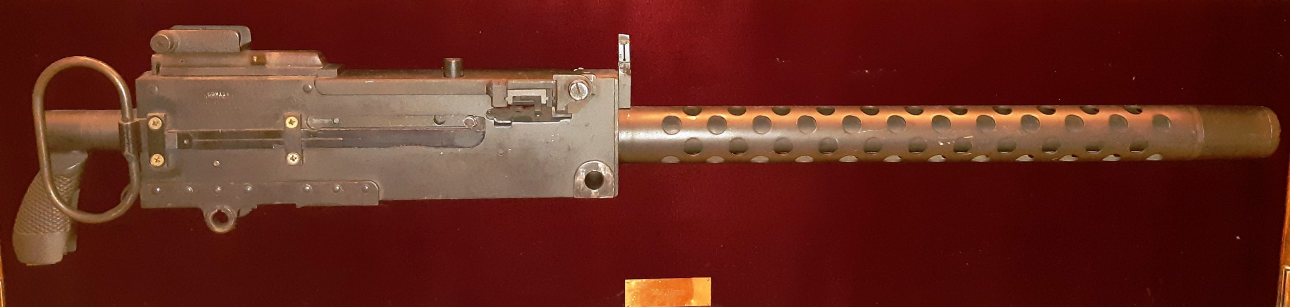 .50-cal Anti-aircraft Machine Gun display, inside the school.