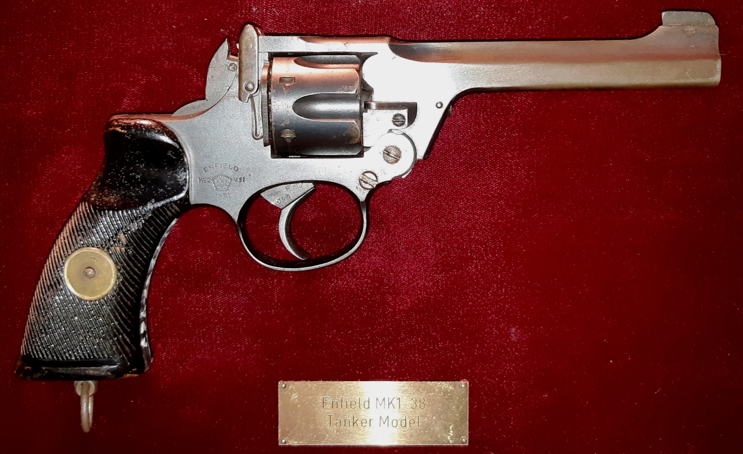 Enfield Mk. 1 .38-cal top-break revolver, manufactured from 1932 to 1957. It was the standard British Commonwealth sidearm in the Second World War, alongside the Webley Mk. IV and the Smith & Wesson Victory Model revolvers chambered in the same calibre.