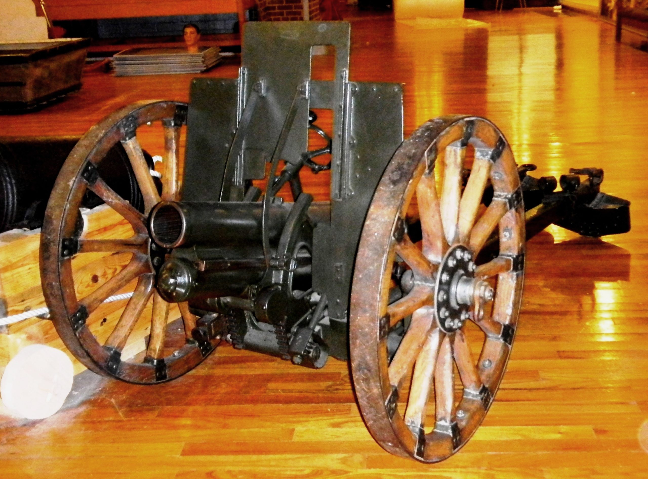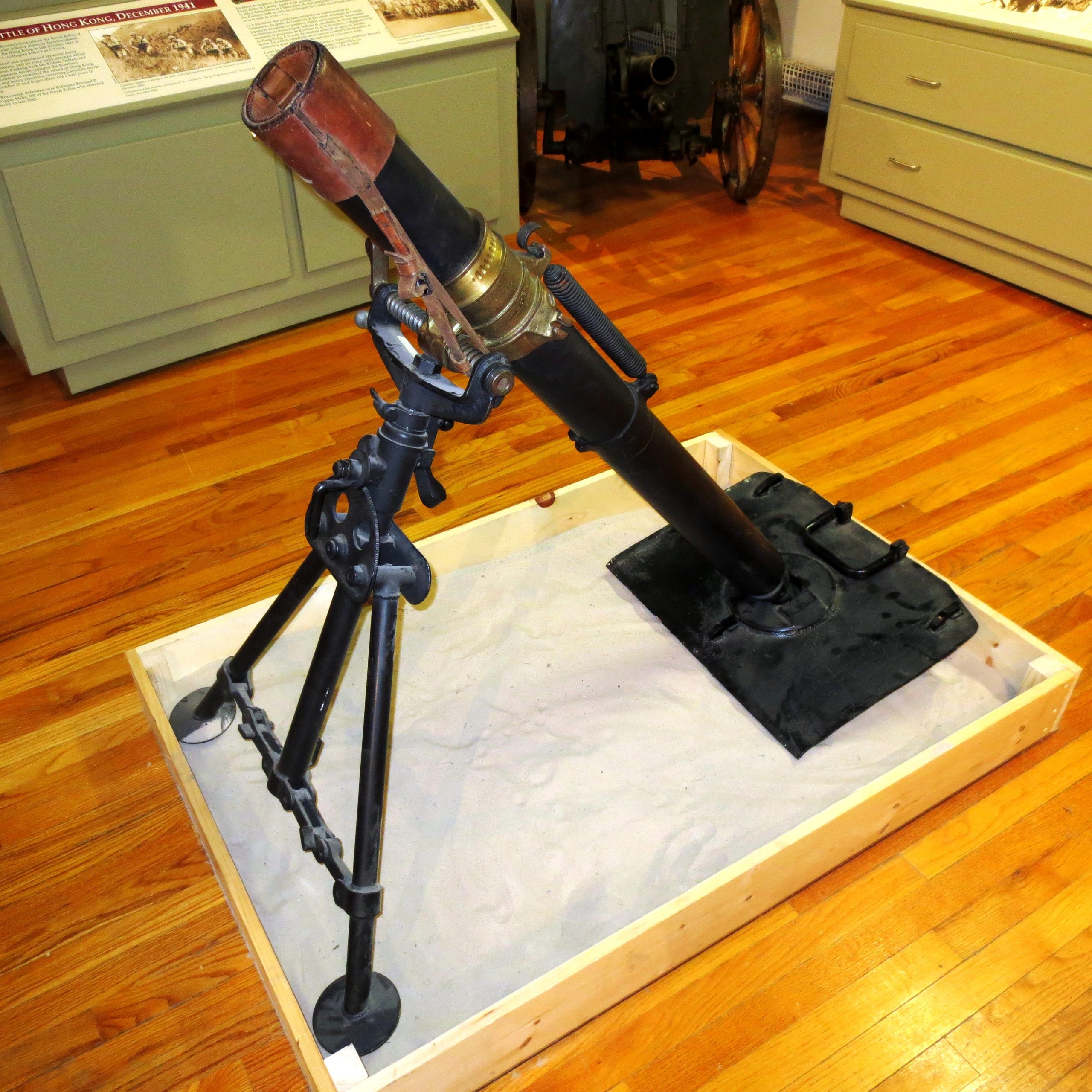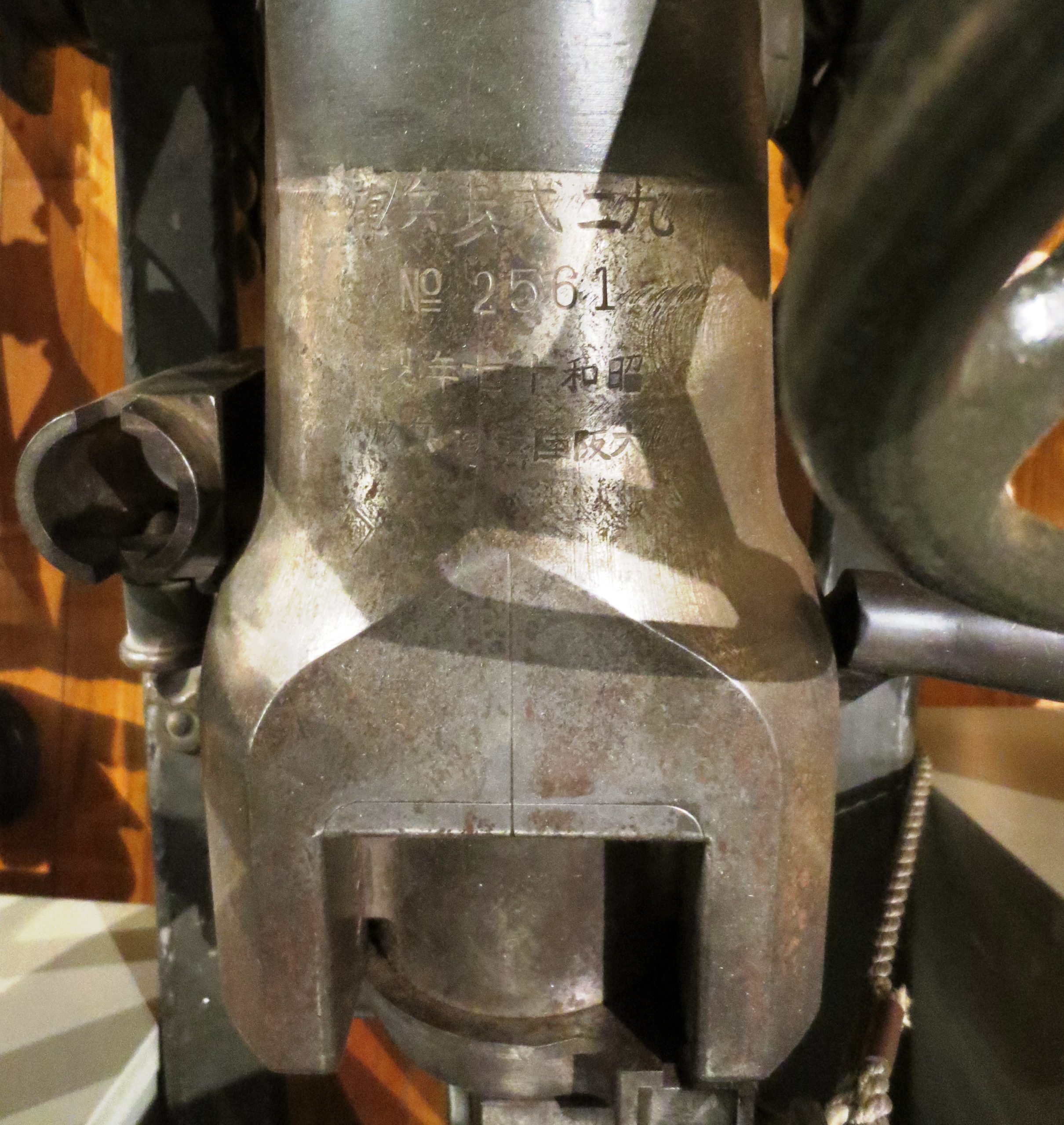 Japanese 70-mm Type 92 Battalion Gun (Serial No. 2561), inside the museum.  The Type 92 Battalion Gun was a light howitzer used by the Imperial Japanese Army during the Second Sino-Japanese War and the Second World War.  The Type 92 number was designated for the year the gun was accepted, 2592 in the Japanese imperial year calendar, or 1932 in the Gregorian calendar.  Each infantry battalion included two Type 92 guns; therefore, the Type 92 was referred to as Battalion Artillery.