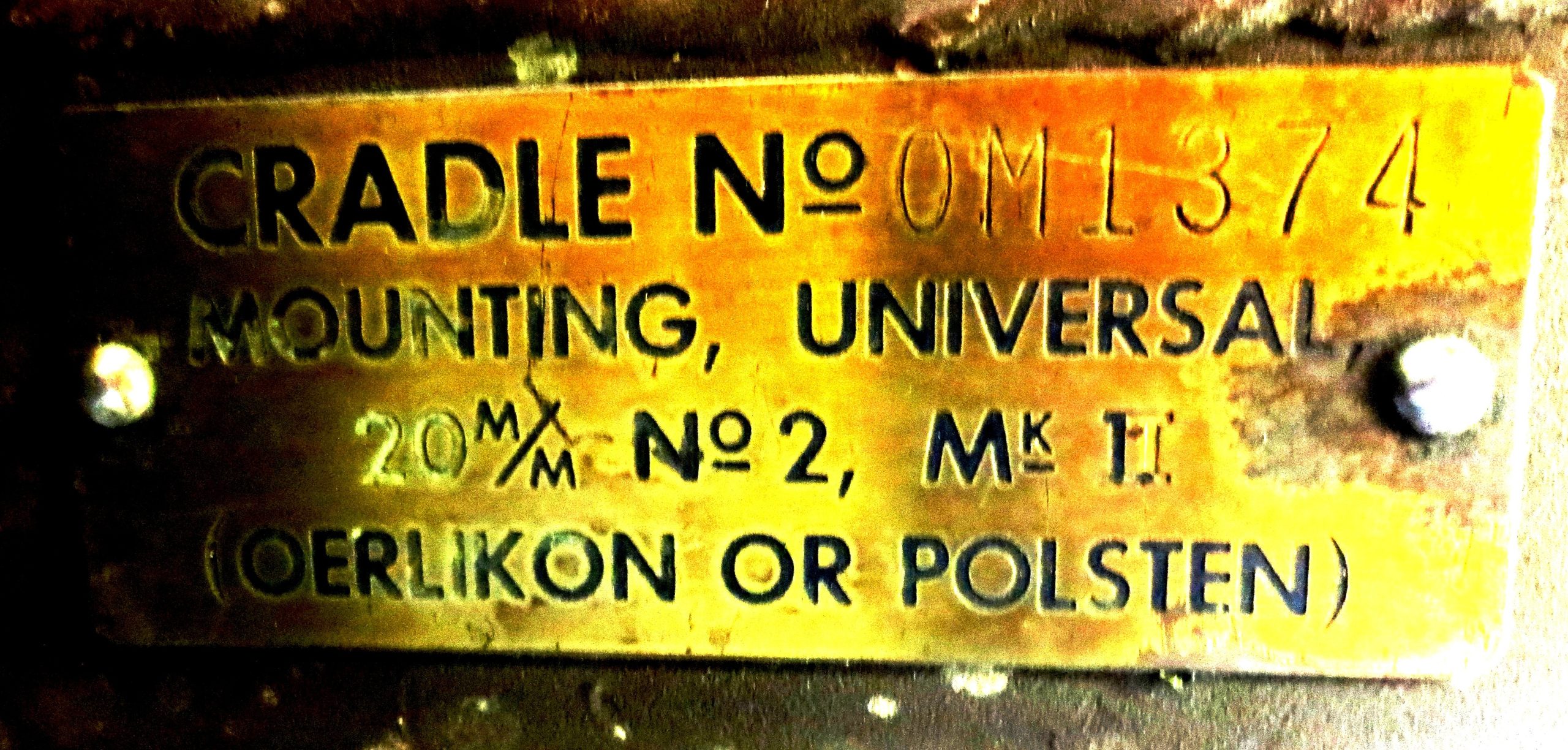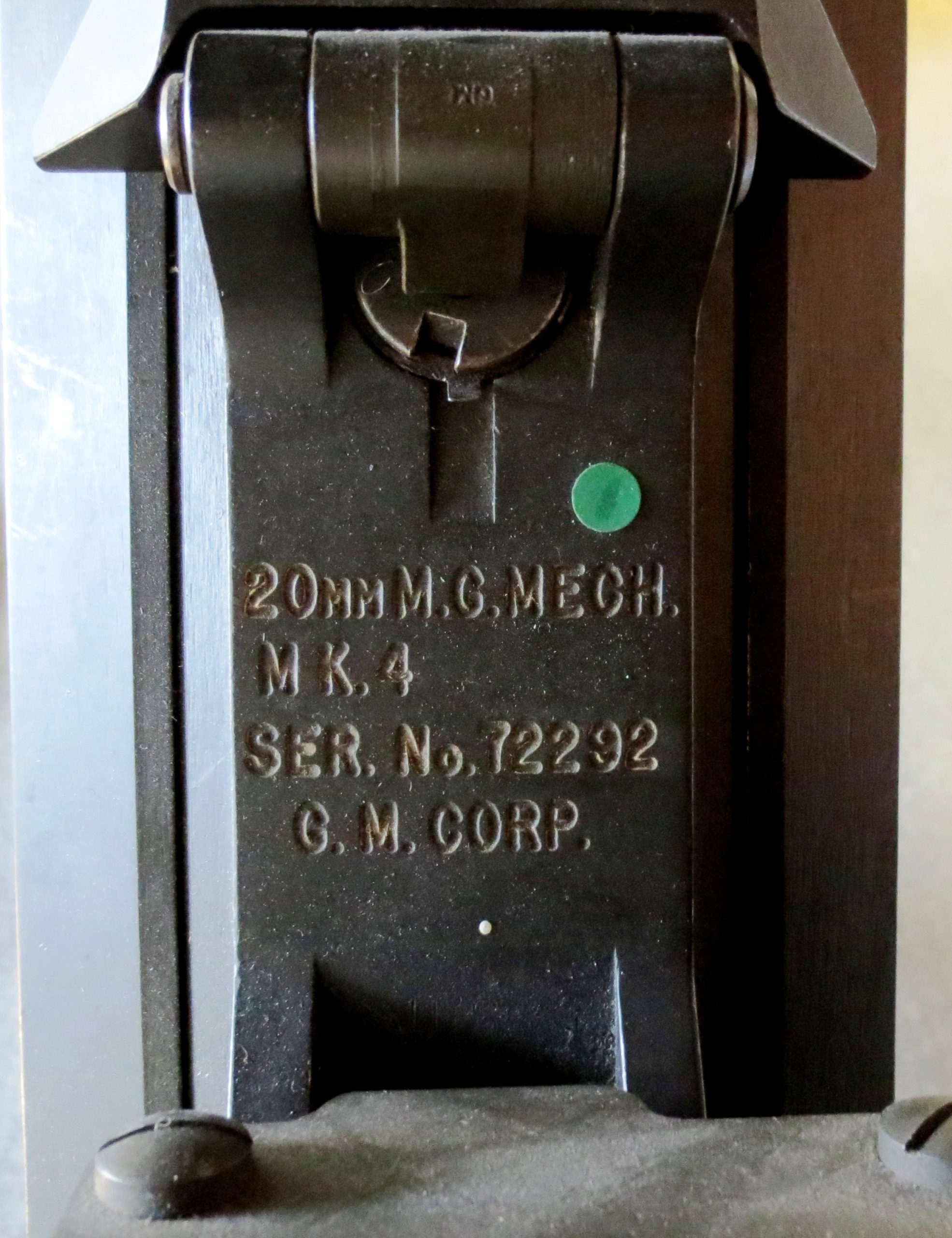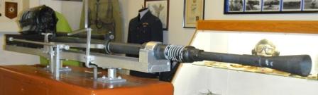 Hispano-Suiza 20-mm M1079 Mk. V Cannon, Spitfire wing gun (usually one of four) inside the museum.  This gun is on loan from the Canadian War Museum.