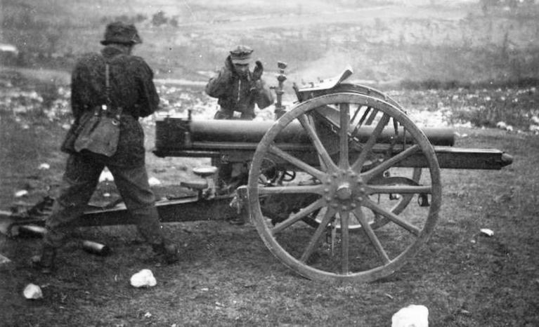 Italian Cannone da 75/27 modello 06 being fired by German gunners, ca 1943.