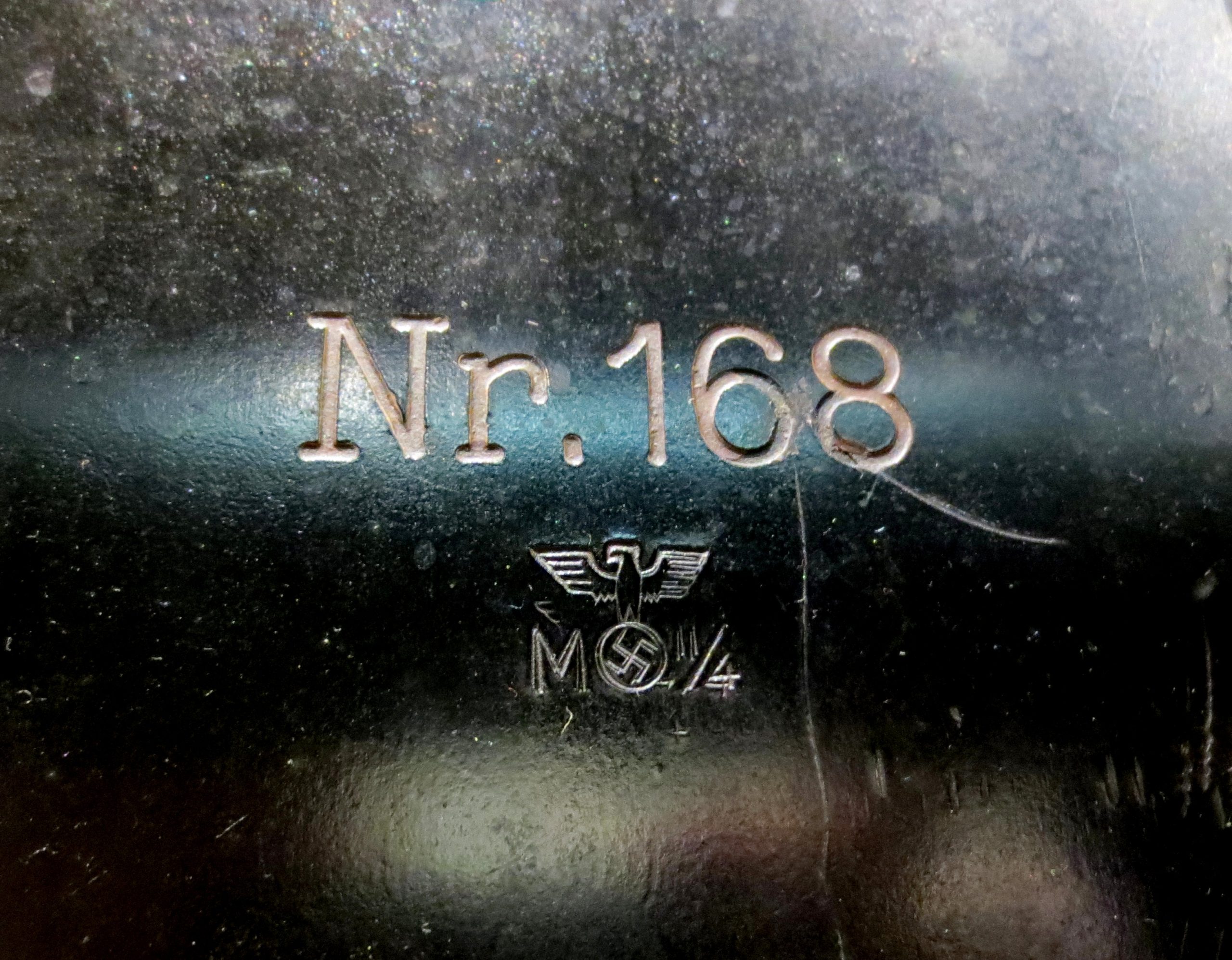 K18 guns were used in the battles in Italy in 1943 against gunners from Saint John, New Brunswick .  The bye marking on the gun is the manufacturers code for HANOMAG-Hannover’sche Maschinenbau AG vorm. Georg Egestorff, Hannover.  This company manufactured approximately 300 of these guns from 1941 onwards (before then, they were built by the Krupp firm).  The camouflage paint for this gun was field gray.