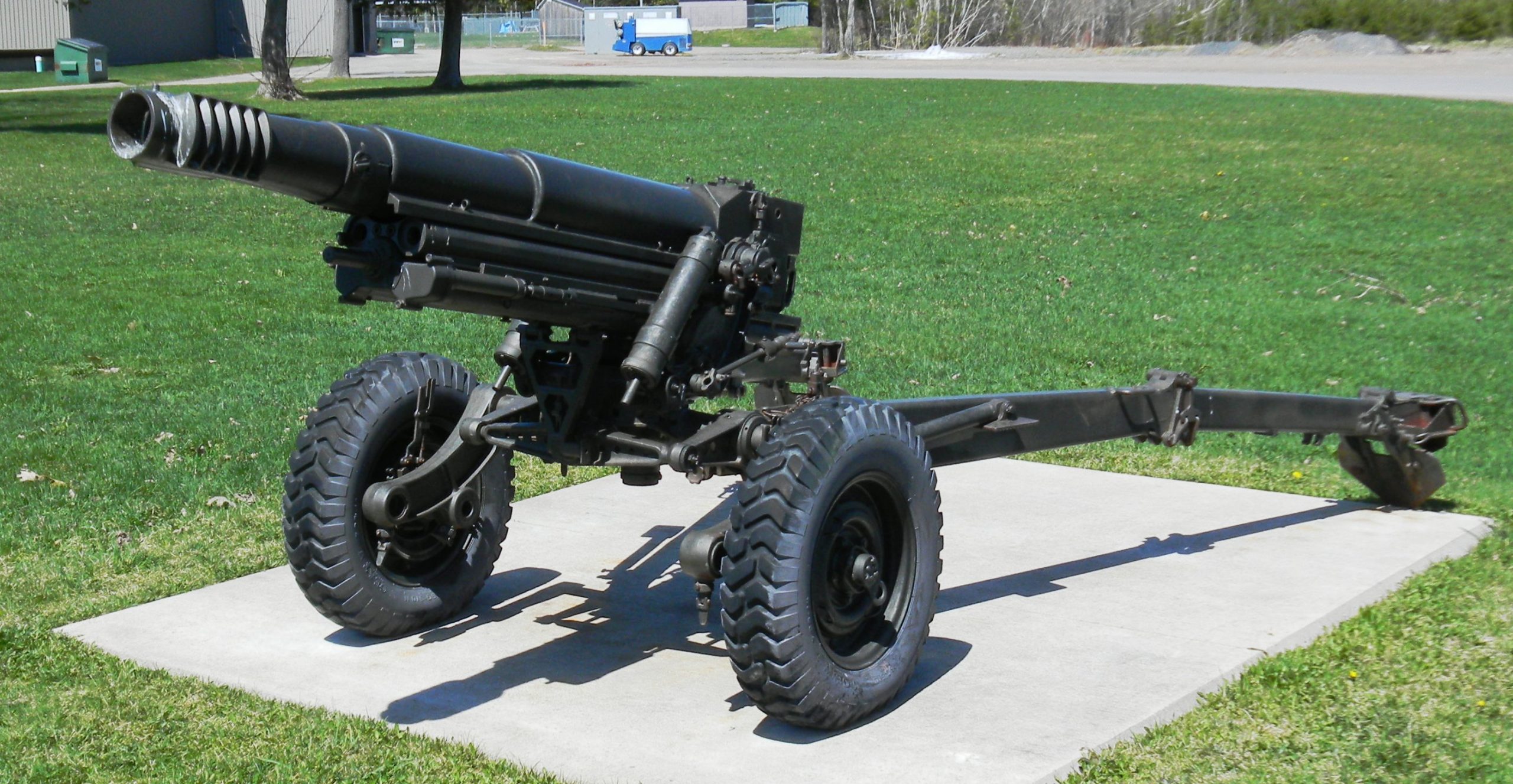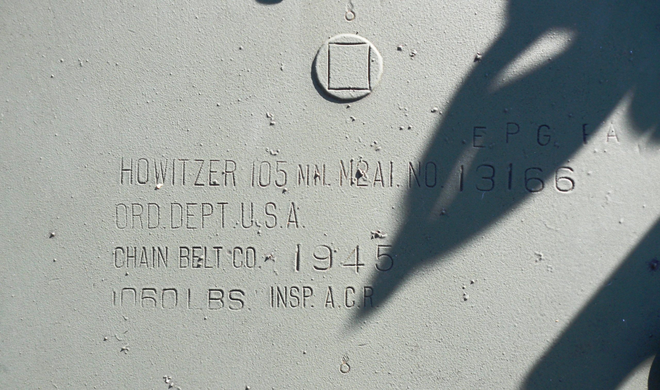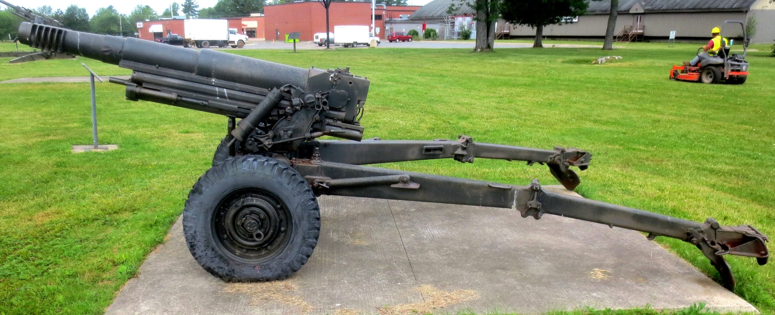 105-mm C1A1 M2A2 Howitzer, Serial No. 13166, 1945, weight 1,060 lbs, in front of the museum.