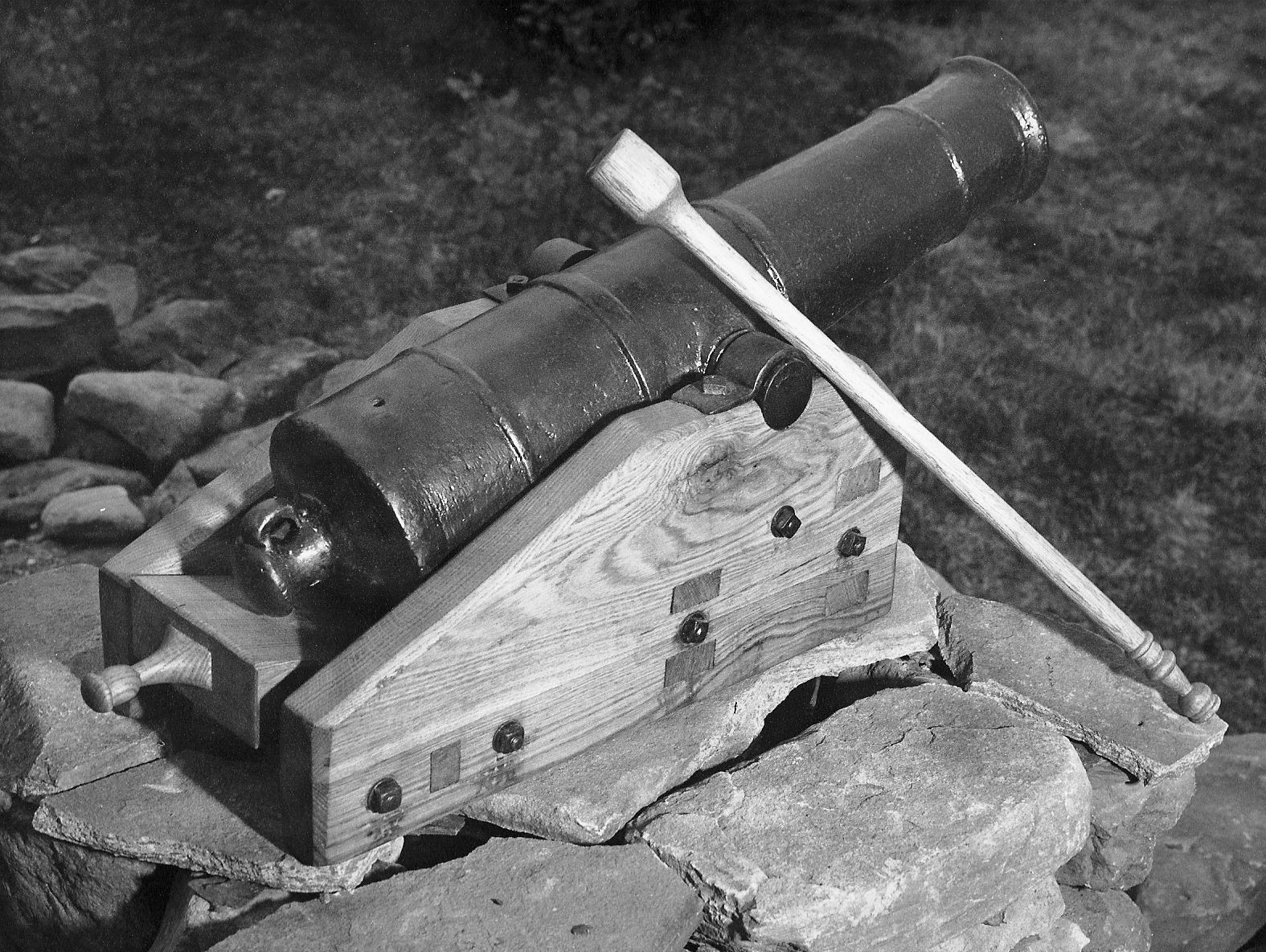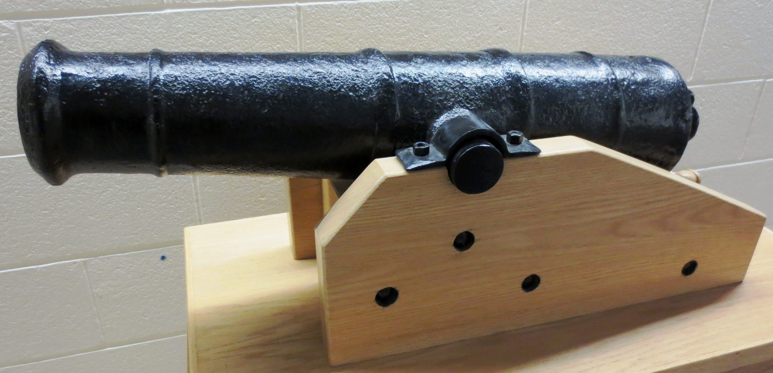 Cast Iron 2-1/4-pounder Smoothbore Muzzleloading Falconet, weight unknown, mounted on a wood carriage, inside the school.  This gun was loaned by the Lockhart family, Bath New Brunswick, to BGen Moncel, HQ, 3rd Canadian Infantry Brigade, Camp Gagetown, 2 July 1959.  Presented to the Artillery School by LCol J.D.E. Crossman, 13 Aug 1978, and restored in 2004.  Building J7.