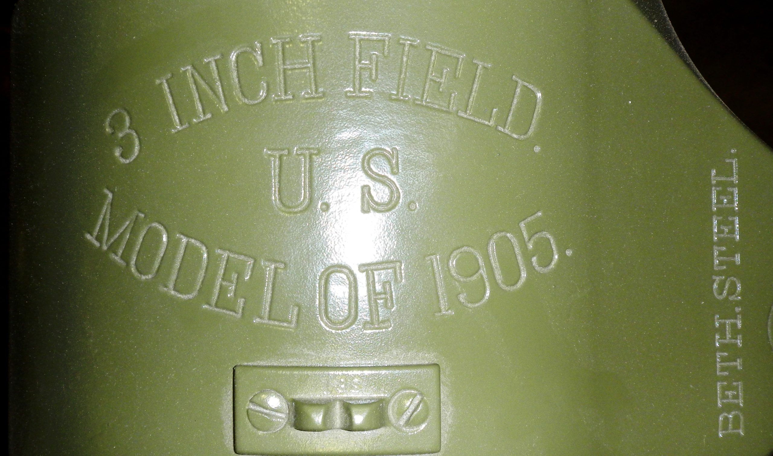 The U.S. Model 1917 shown here is the original horsedrawn type, designated the Model 1917 (or M1917).  The one preserved with the RCA Museum at CFB Shilo has been “high-speeded” with Martin Parry gear and therefore is the M1917A1.  Although most field artillery enthusiasts note the d muzzle (flush with the front of the recoil guides) of the American piece vis-à-vis its British counterpart, many miss the difference in the configuration of the splinter shield.  The main shield (ignoring the top and bottom extensions) of the British gun (both 18-pounder and 13-pounder) is bent back at the level of the gun, whereas the main shield of the American gun is not, but is straight up and down (though tilted back a little from bottom to top).  Finally, in the CFB Shilo gun’s description, mention is made of the Bethlehem Steel “Coy”. An American business firm or the American military unit whose size lies between the platoon and the battalion is ALWAYS abbreviated “Co.” NEVER “Coy.”  The latter is for British and Commonwealth usage and should be corrected  wherever American firms appear.  (Nelson Lowry)