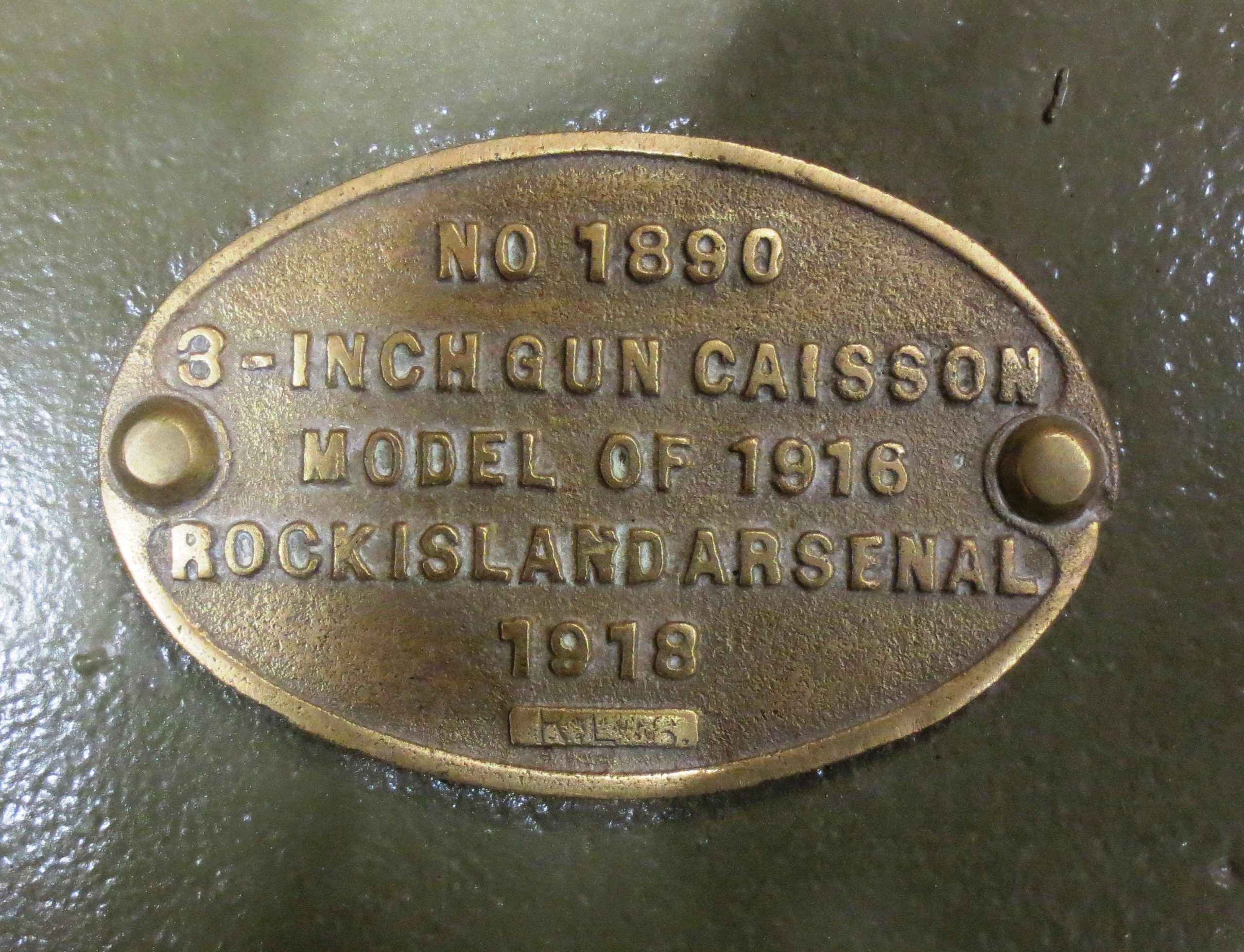 Limber (Serial No. 1890), 3-inch Gun Caisson, Model of 1916, Rock Island Arsenal, 1918.  This limber was made in Illinois.  The Rock Island Arsenal was the traditional builder of U.S. Army field carriages, limbers, and caissons.  The number of Model 1902 carriages built exceeds that of the Model 1905, because the Models 1902, 1904, and 1905 3-inch guns were all mounted on the Model 1902 field carriage.  In 1918 the year the First World War ended, the U.S. Army was still being provided with 3-inch ordnance matériel, whereas the American units sent overseas used only French 75-mm Guns.