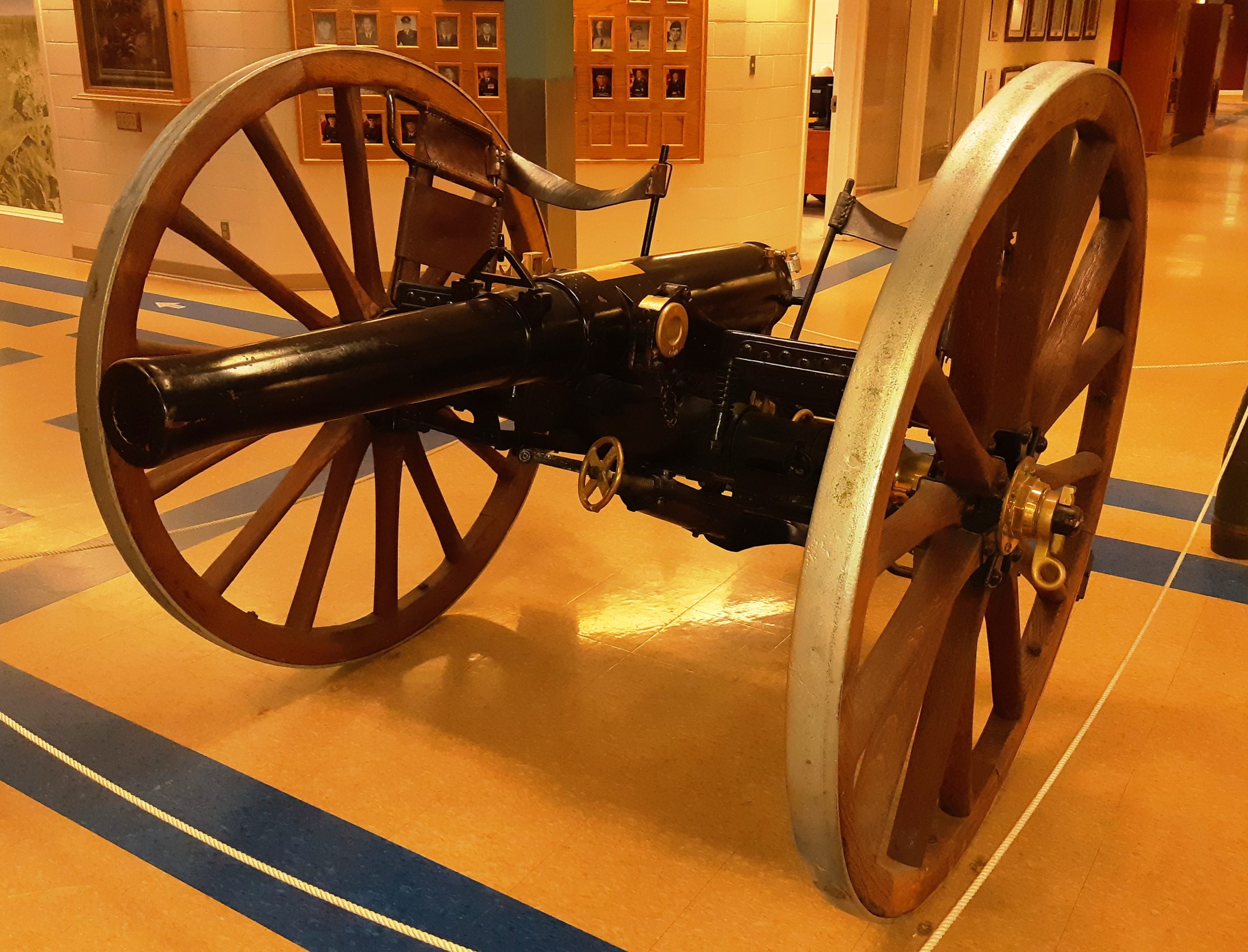 105-mm L5 Pack Howitzer, (Serial No. 57747), inside the school.