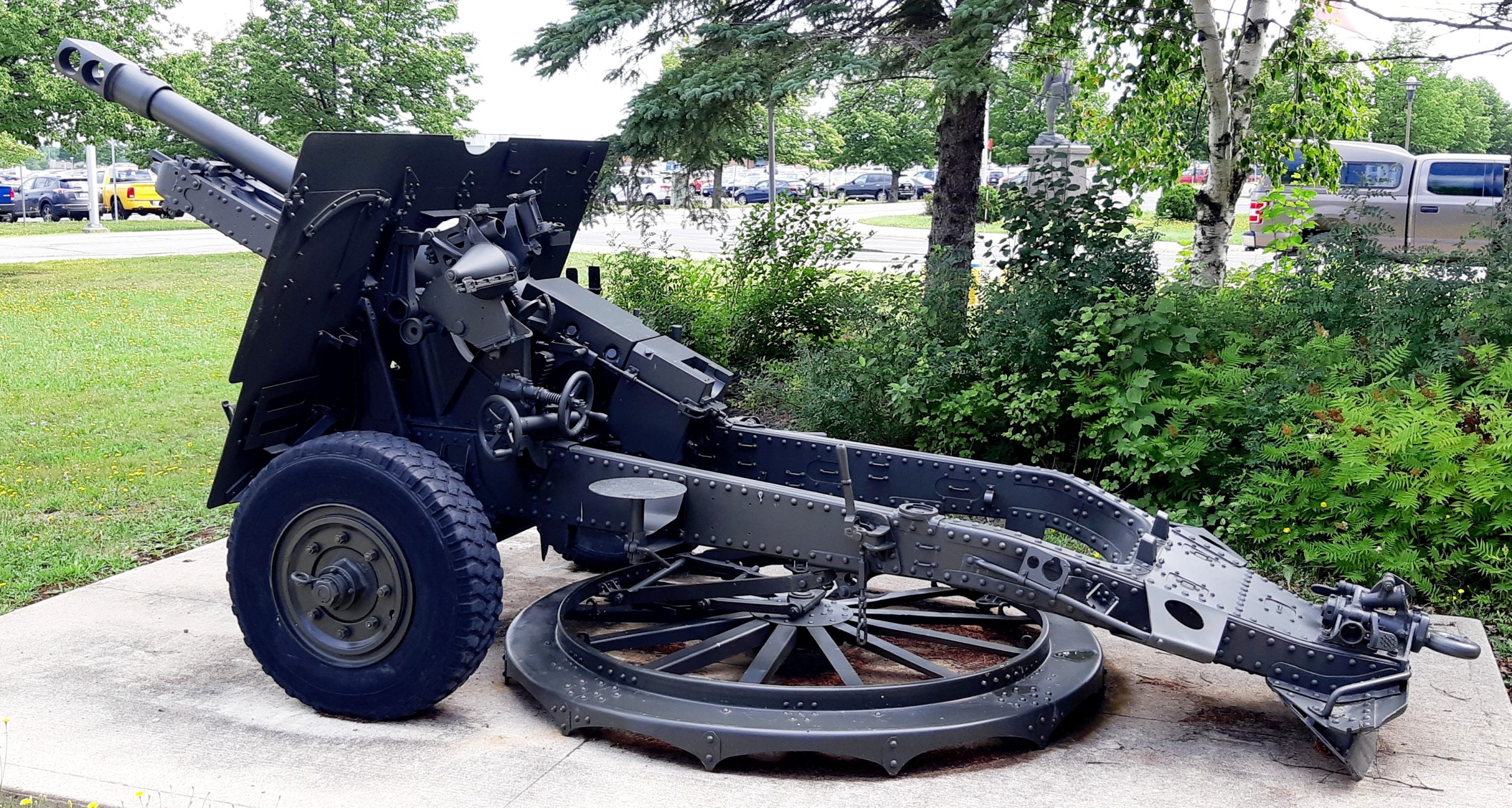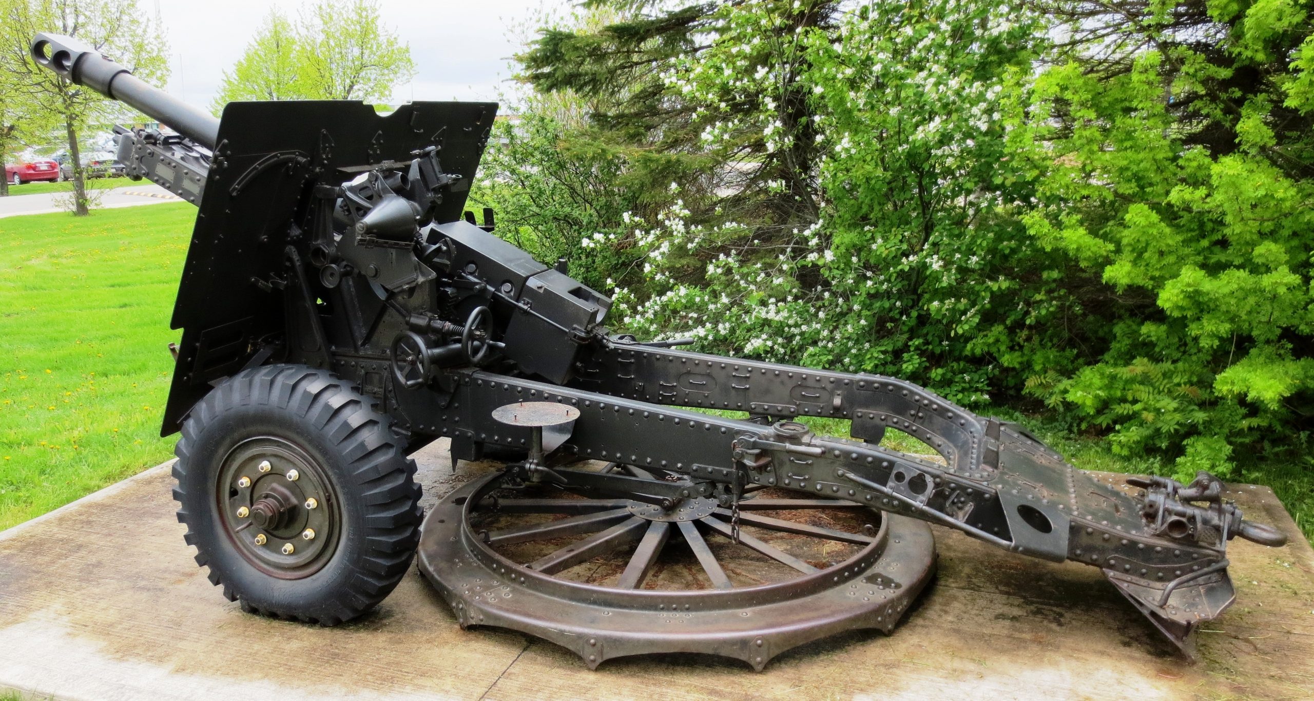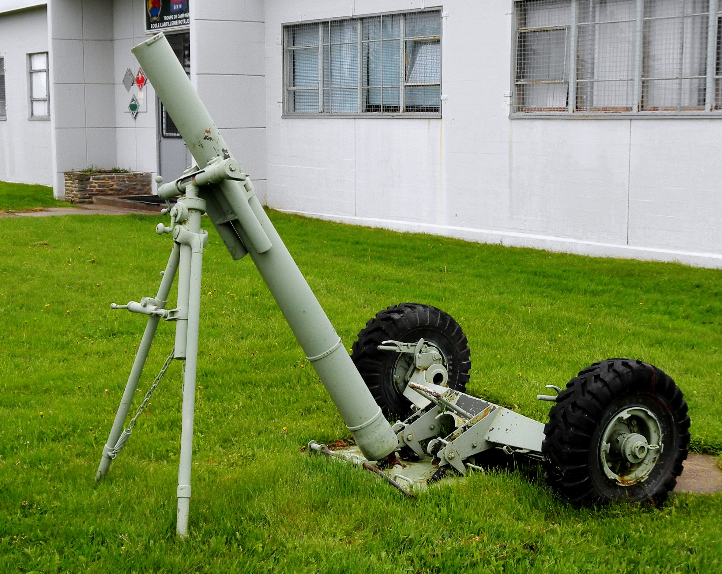 120-mm Mortar with wheeled flat base plate and 1941 Canadian tires, outside K lines.