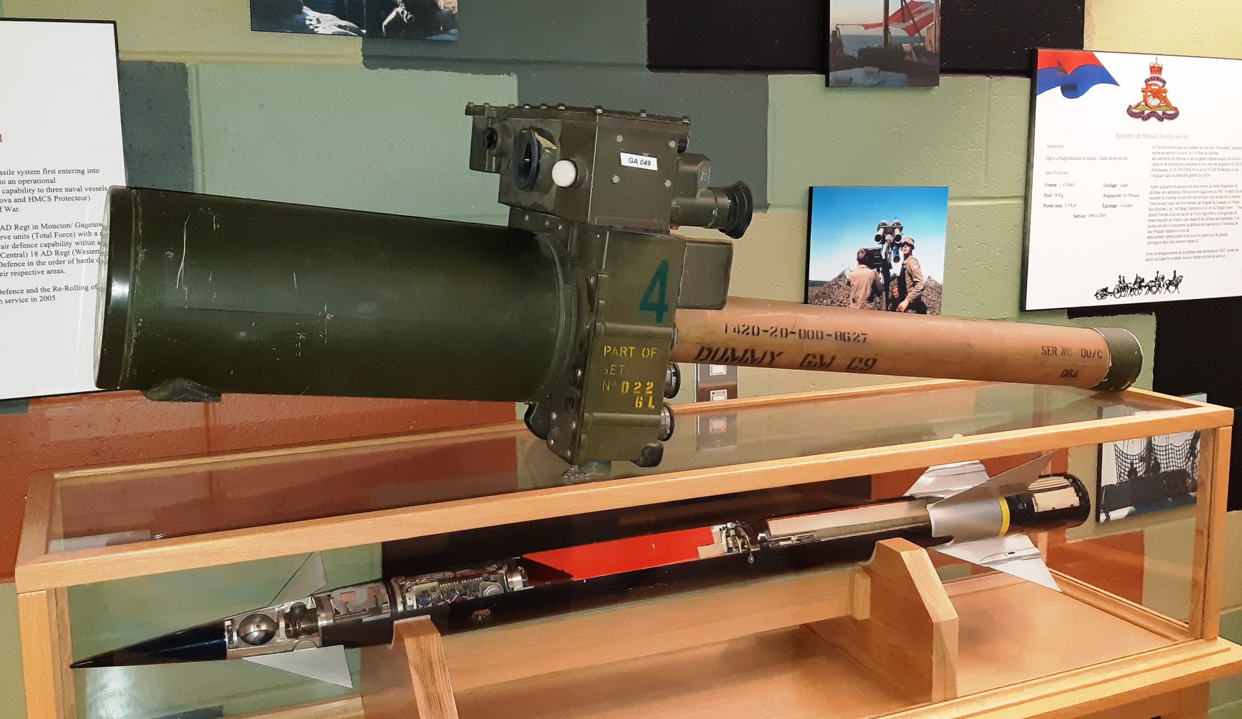 Blowpipe short range surface to air missile launcher and Missile, inside the RRCAS.