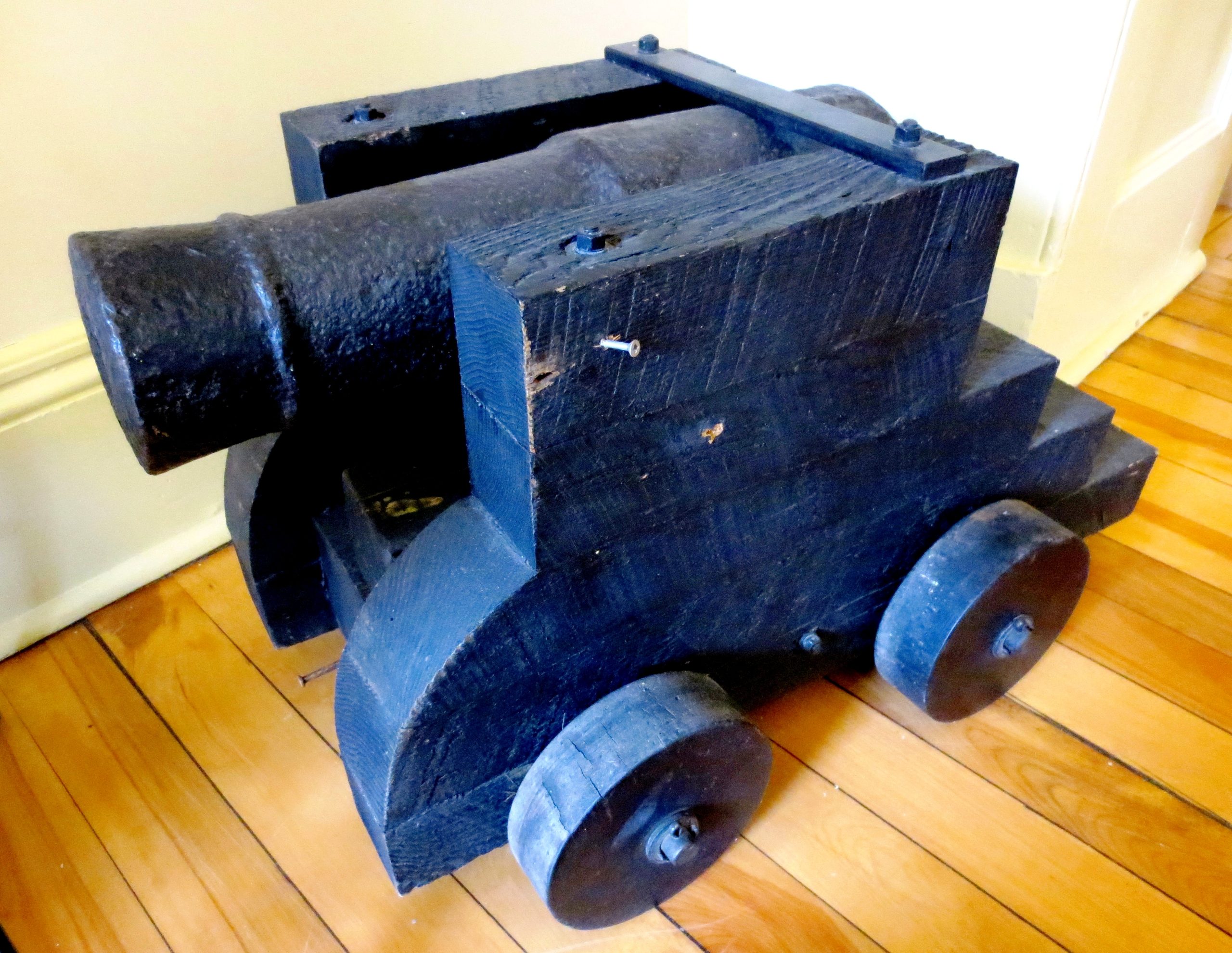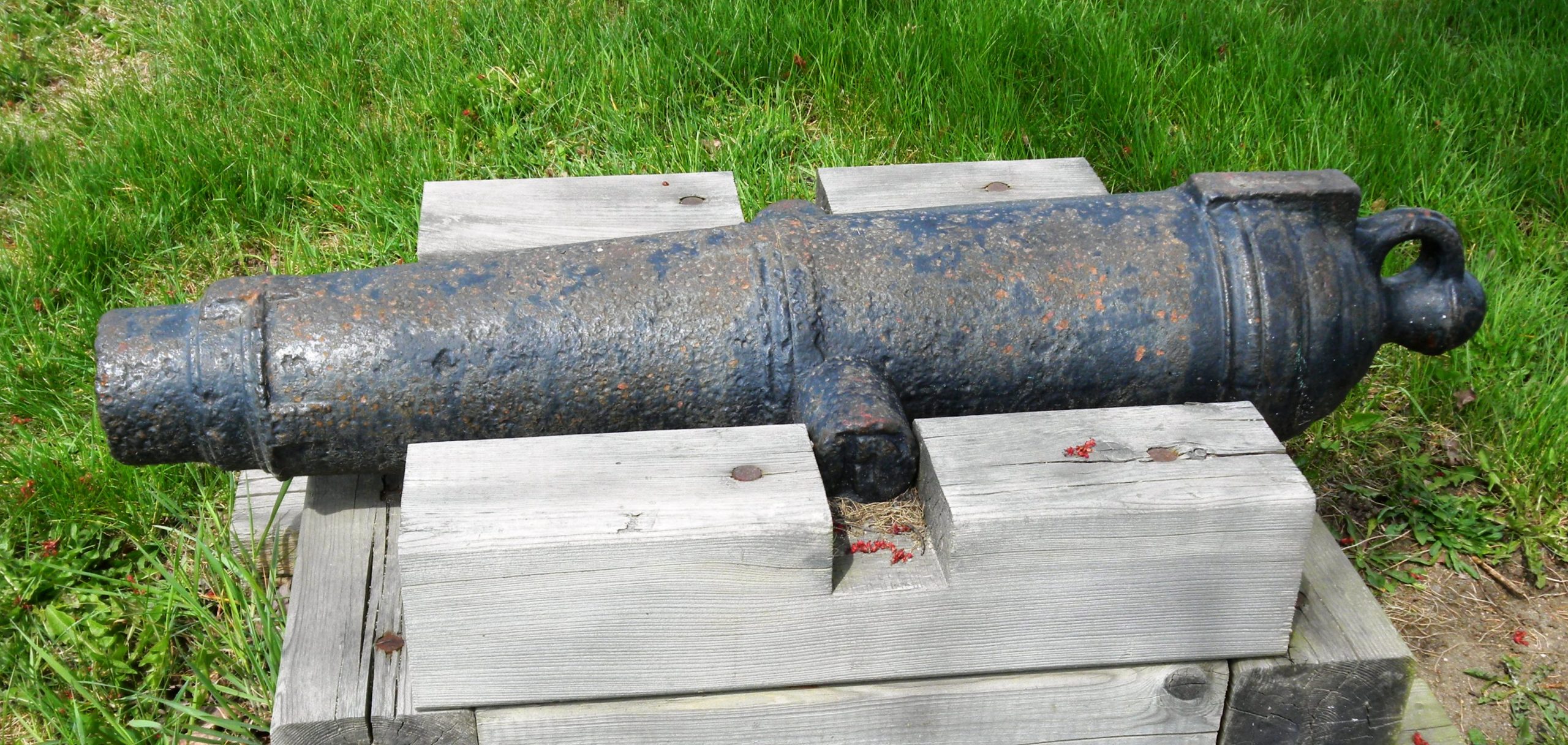 Cast Iron ½-pounder Smoothbore Muzzleloading Gun, heavily corroded, no markings visible, mounted on a wooden carriage. This gun is recorded as having come from Fort Jemseg and was on display inside the Fredericton Region Museum on Officer’s Square. Gift from Mrs Goodrich Sloat, 1969. It is currently on loan to the New Brunswick Military History Museum at 5 Division Area Support Base Gagetown.