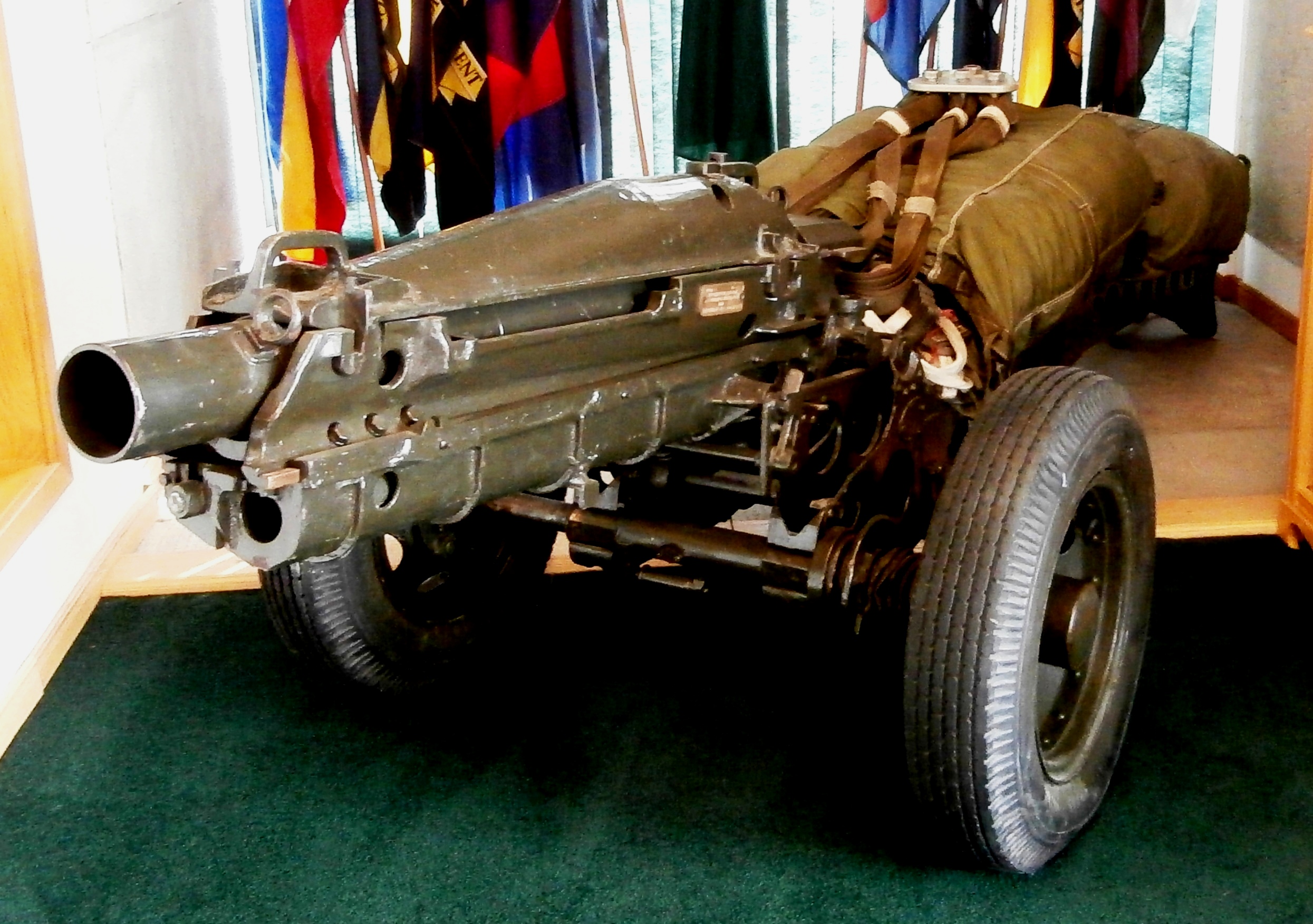 75-mm Pack Howitzer, rigged for a paradrop, inside the 2 CMBG HQ main entrance, 4 Canadian Division Support Base Petawawa, Ontario.