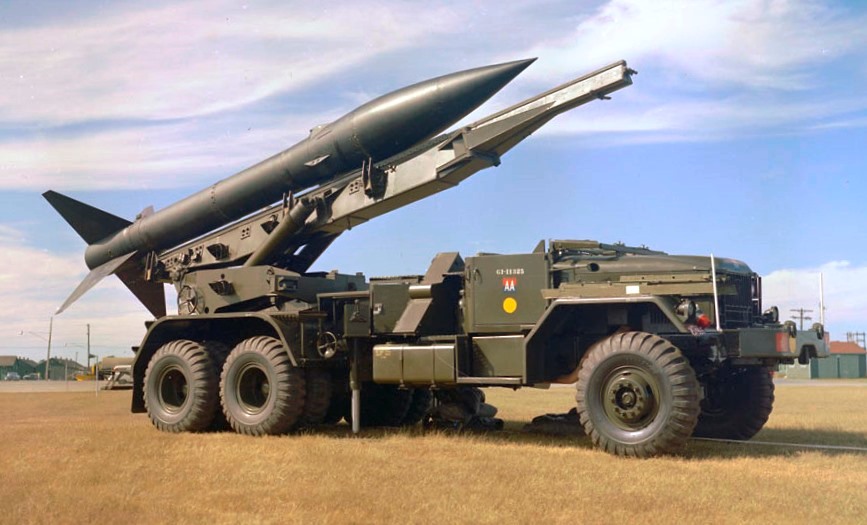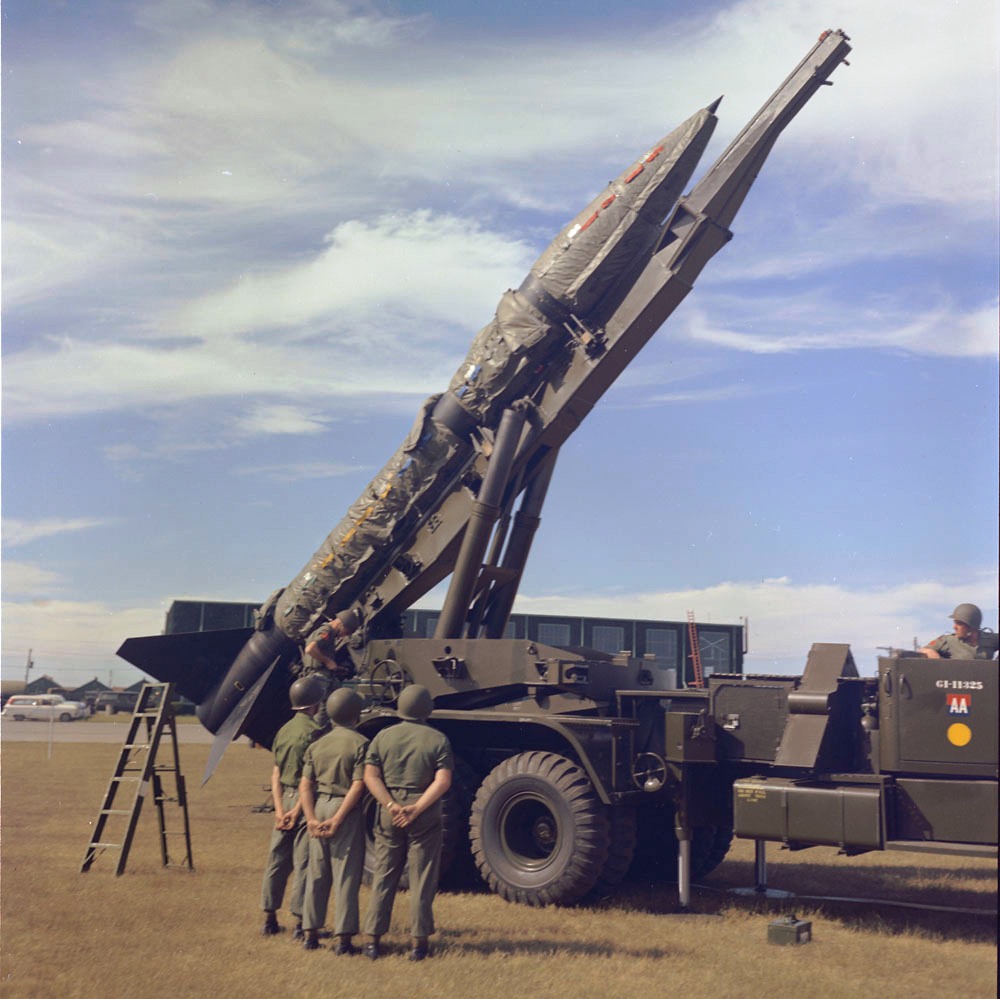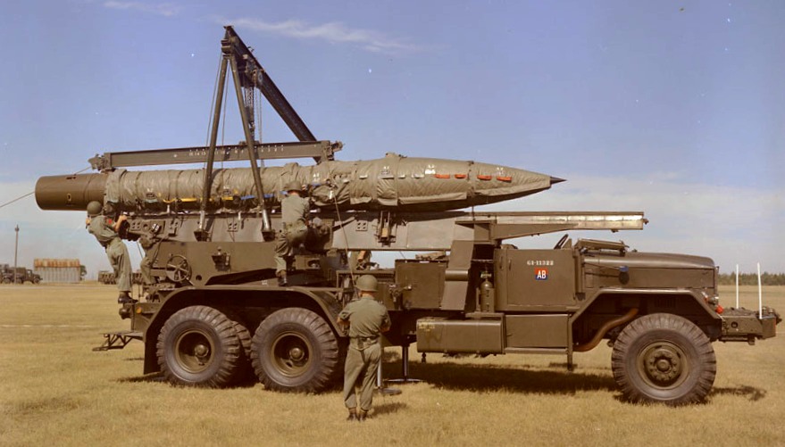 2nd Surface-to-Surface Missile Battery, RCA, with an M31 762-mm Honest John rocket mounted on the M386 Launcher. In this case the heating blankets have been wrapped around the rocket. (Doug Knight)