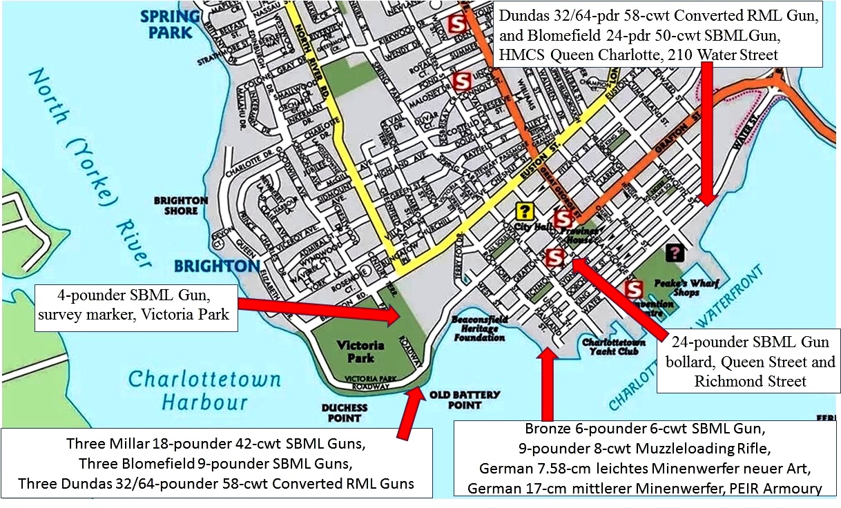 Location diagram of artillery preserved in Charlottetown.