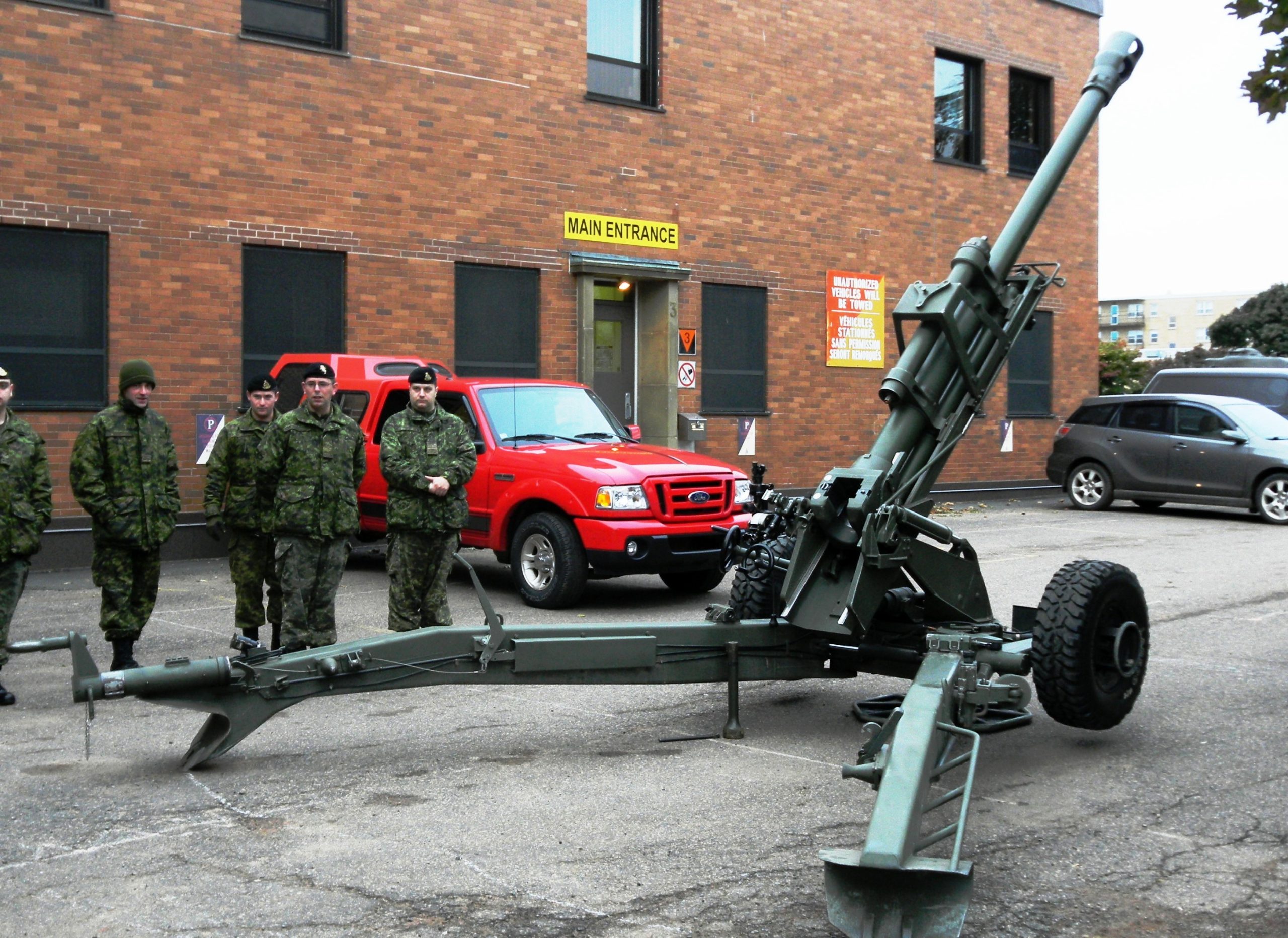 105-mm LG1 C1 Mk. II Light Gun, one of two in service for gunnery training, shown here at the Queen Charlotte Armoury, Charlottetown, 14 Oct 2012. This gun has a maximum range using NATO standard ammunition of 11,400 metres.