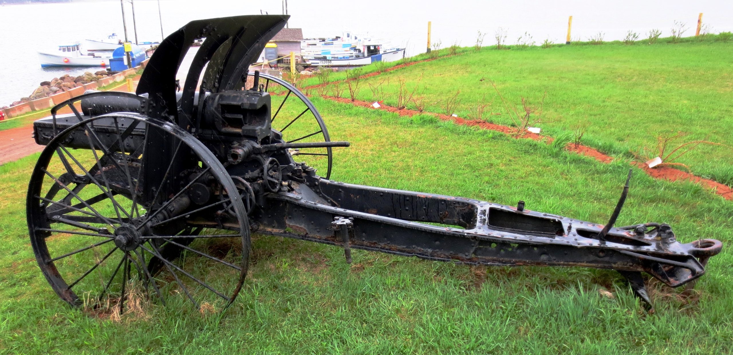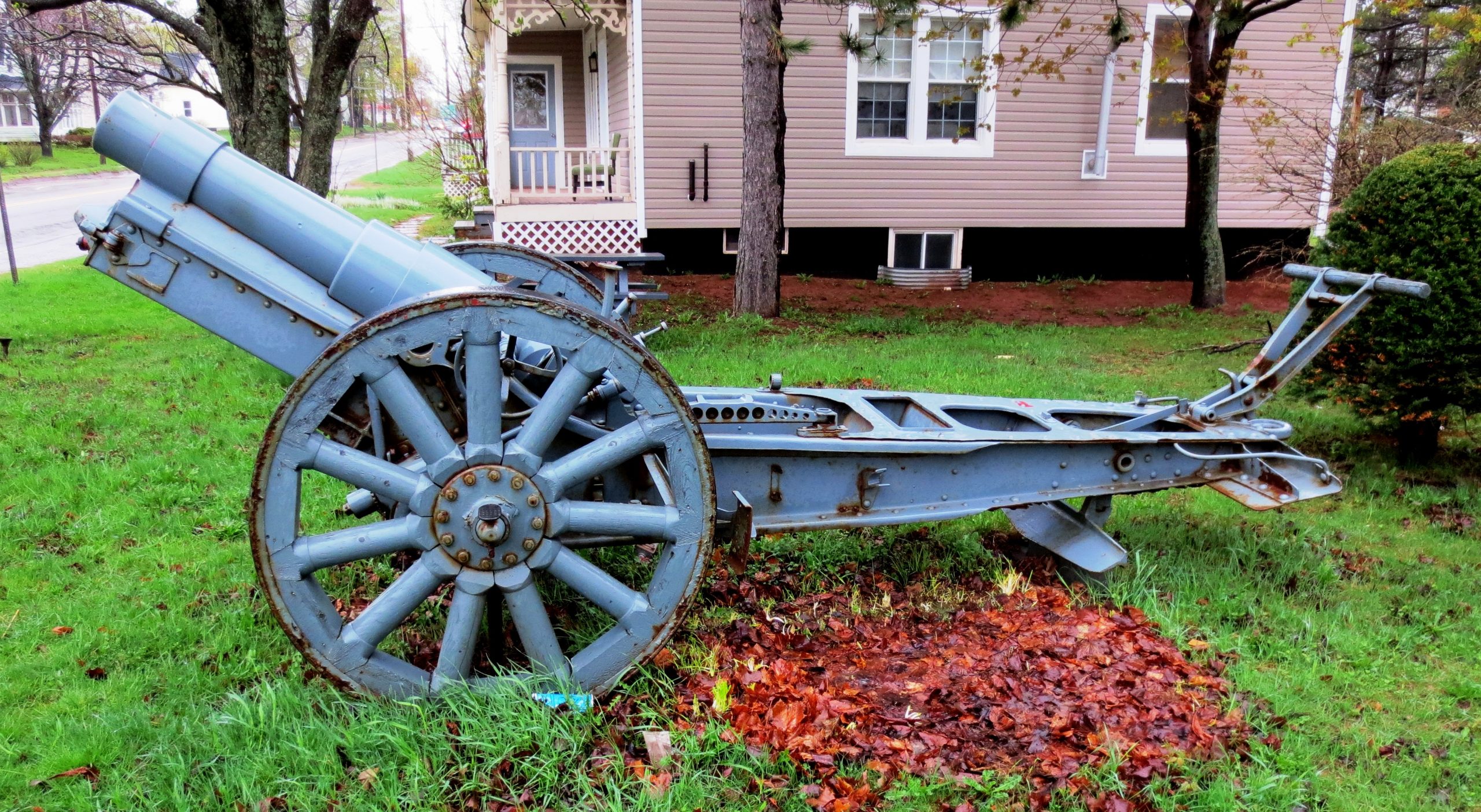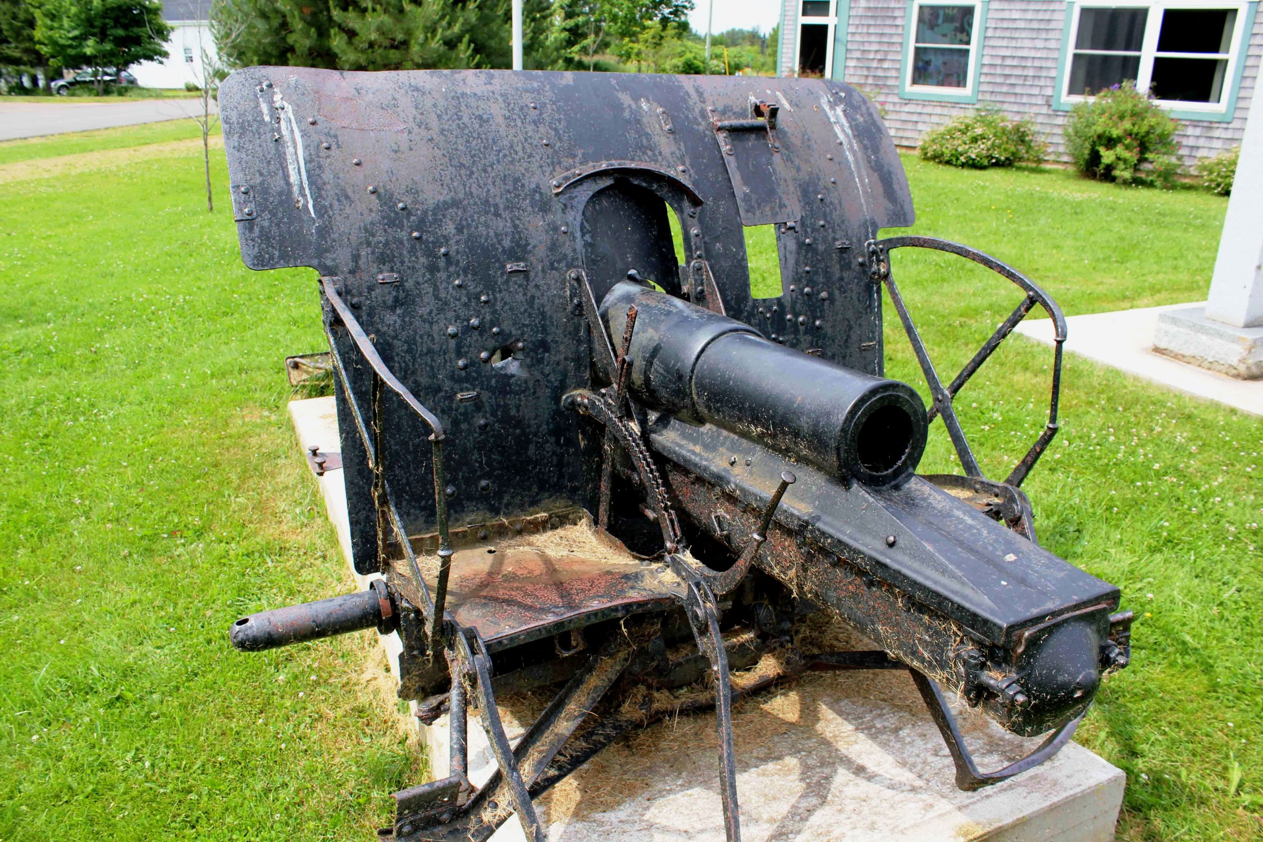 German First World War 15-cm schwere Feldhaubitze 1902 (15-cm sFH 02), (Serial Nr. 86), A.G. Essen, 1904. This sFH 02 was likely captured ca 1918 by a Battalion of an Infantry Brigade in a Canadian Division with the Canadian Expeditionary Force (CEF), in France. It was originally allocated to Charlottetown. The sFH 02 is on display outside the Kensington Veteran’s Memorial Military Museum, next to Royal Canadian Legion Branch No. 9.