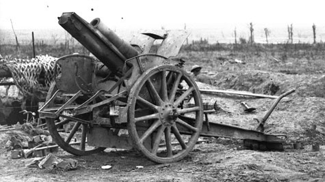 German First World War 10.5-cm Feldhaubitze 98/09, captured by the 17th Battery C.F.A. and put into action firing on the retreating Germans during the Battle of Vimy Ridge.