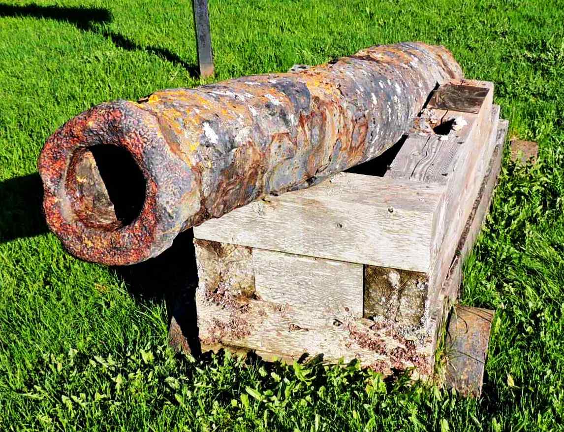 French possibly 24-pounder Smoothbore Muzzleloading Gun, heavily corroded. This gun was recovered from a French frigate that sank during the siege of Louisbourg in 1758. The cannon was retrieved from the harbour in 1900. From 9 Nov 1901, the Natural History Society of Prince Edward Island had it on display in front of Province House in Charlottetown. In 1965, while Province House was being renovated, the cannon was entrusted to Parks Canada and stored at the Port-la-Joye/Fort-Amherst National Historic Site. In the fall of 1999, the cannon was loaned by Parks Canada to the Acadian Museum in Miscouche to commemorate the ties which once existed between Île Saint-Jean and Louisbourg. Its new site was officially inaugurated on 12 Aug 2000. It is located along Highway 2 at the eastern end of Miscouche, near the Acadia Museum.