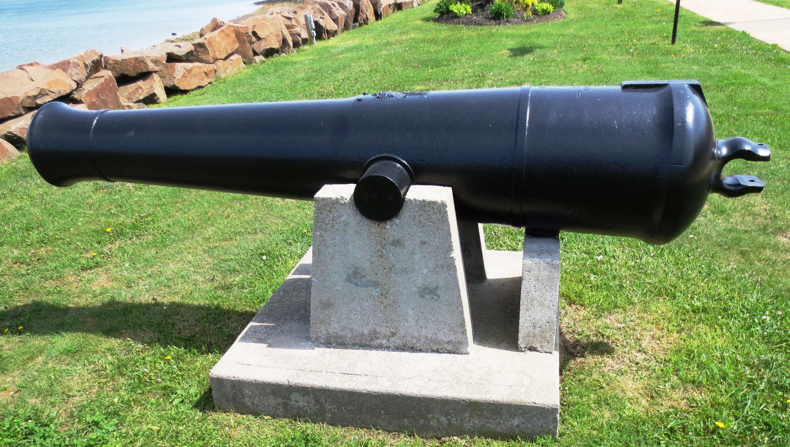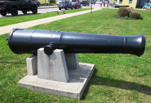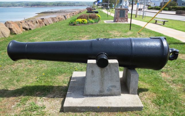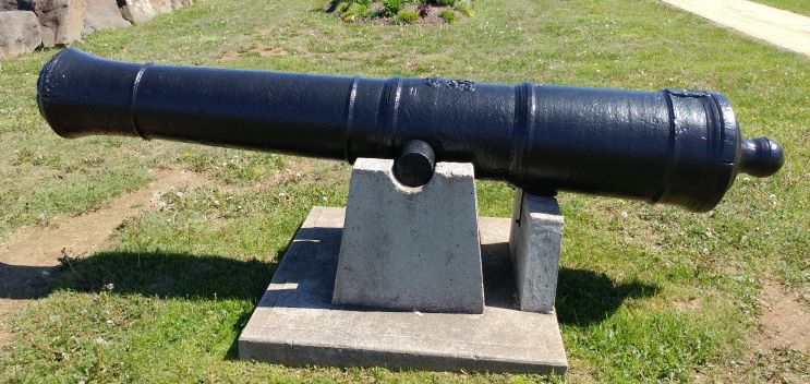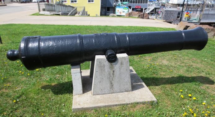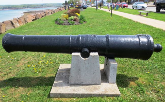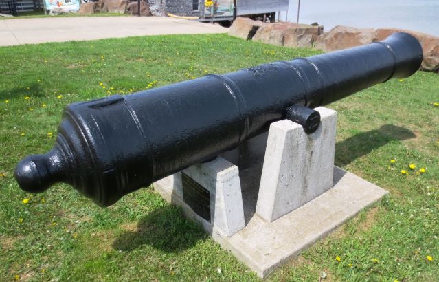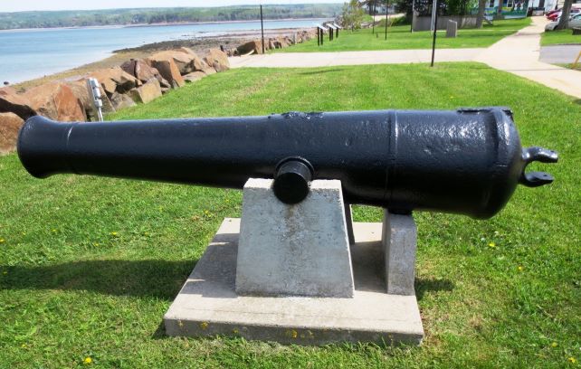There are three Cast Iron Smoothbore Muzzleloading Guns from the reign of King George II (1727-1760), all about 9 feet long laying on the ground on the site of an old battery at the Gut of Digby.