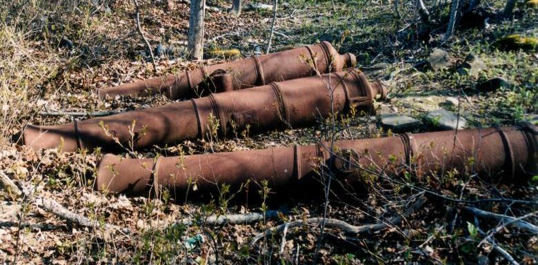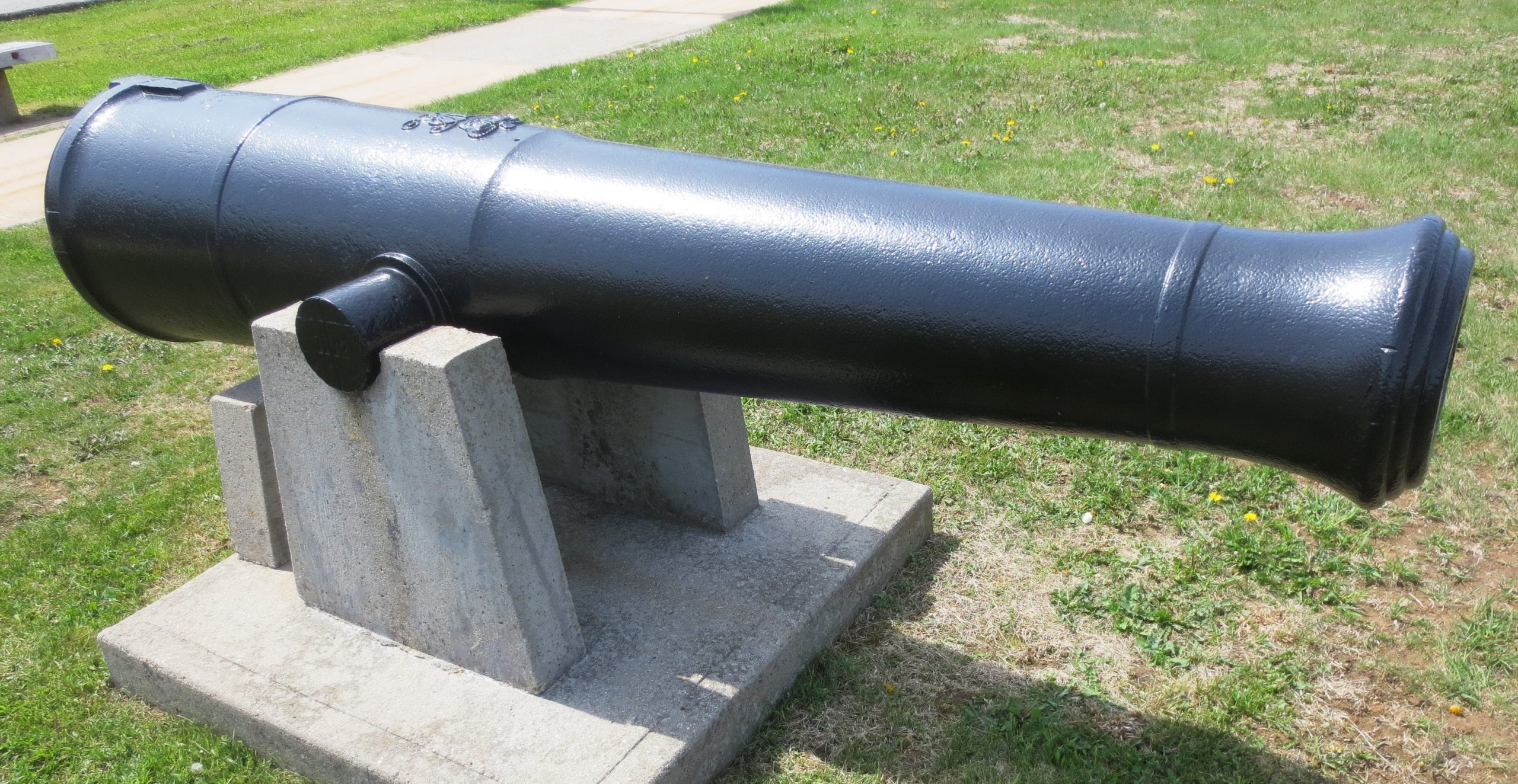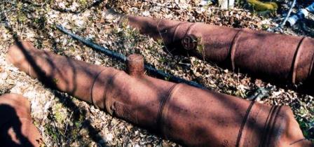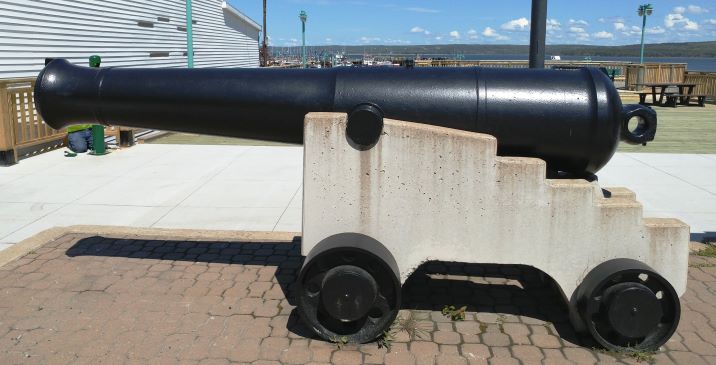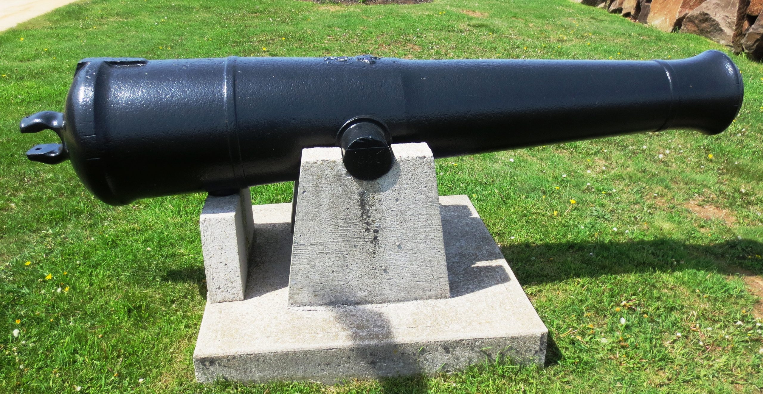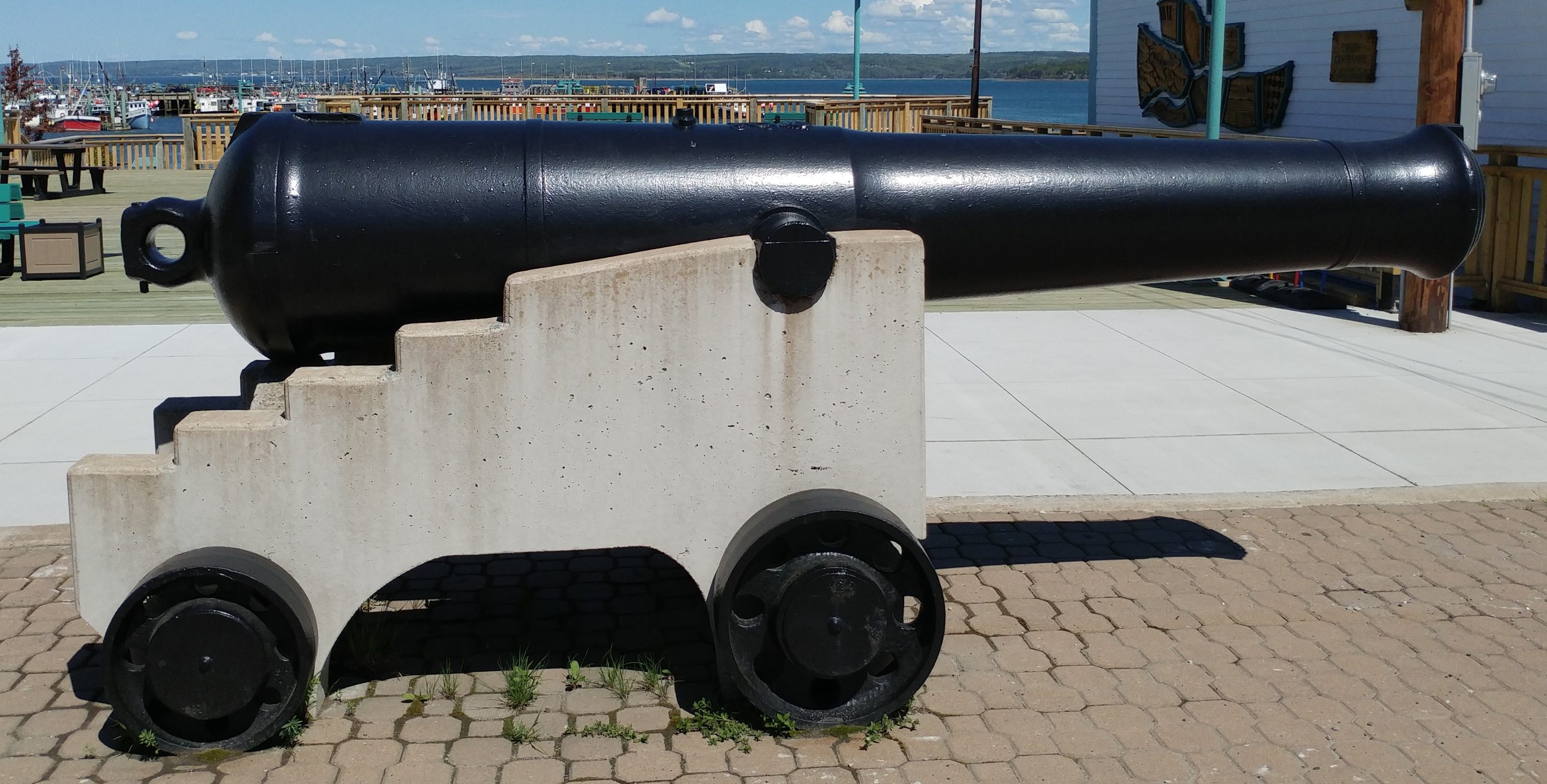 There are three Cast Iron Smoothbore Muzzleloading Guns from the reign of King George II (1727-1760), all about 9 feet long laying on the ground on the site of an old battery at the Gut of Digby.