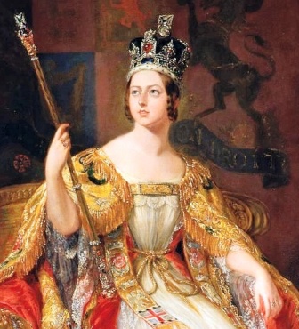 Queen Victoria and her cypher, reigned from 2 June 1837 to 22 Jan 1901, portrait at her Coronation, 1838. (Wikipedia Photo)