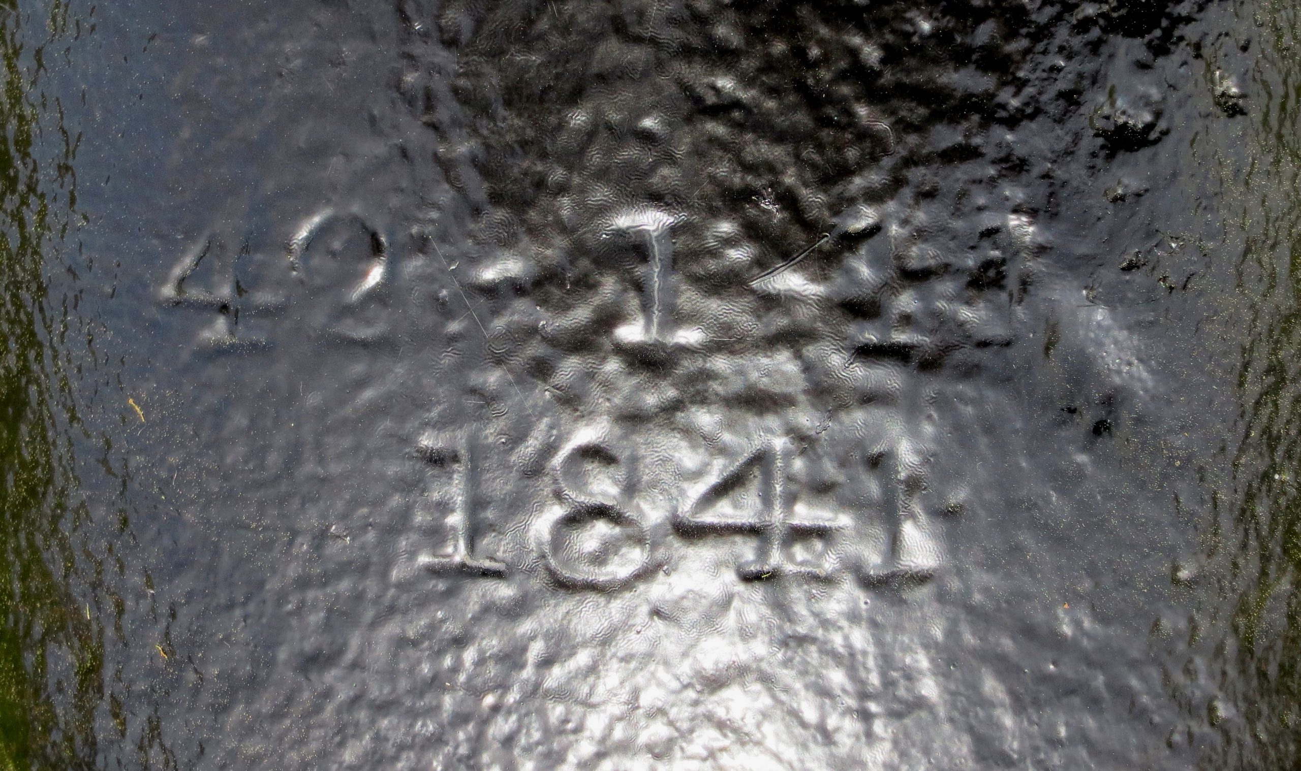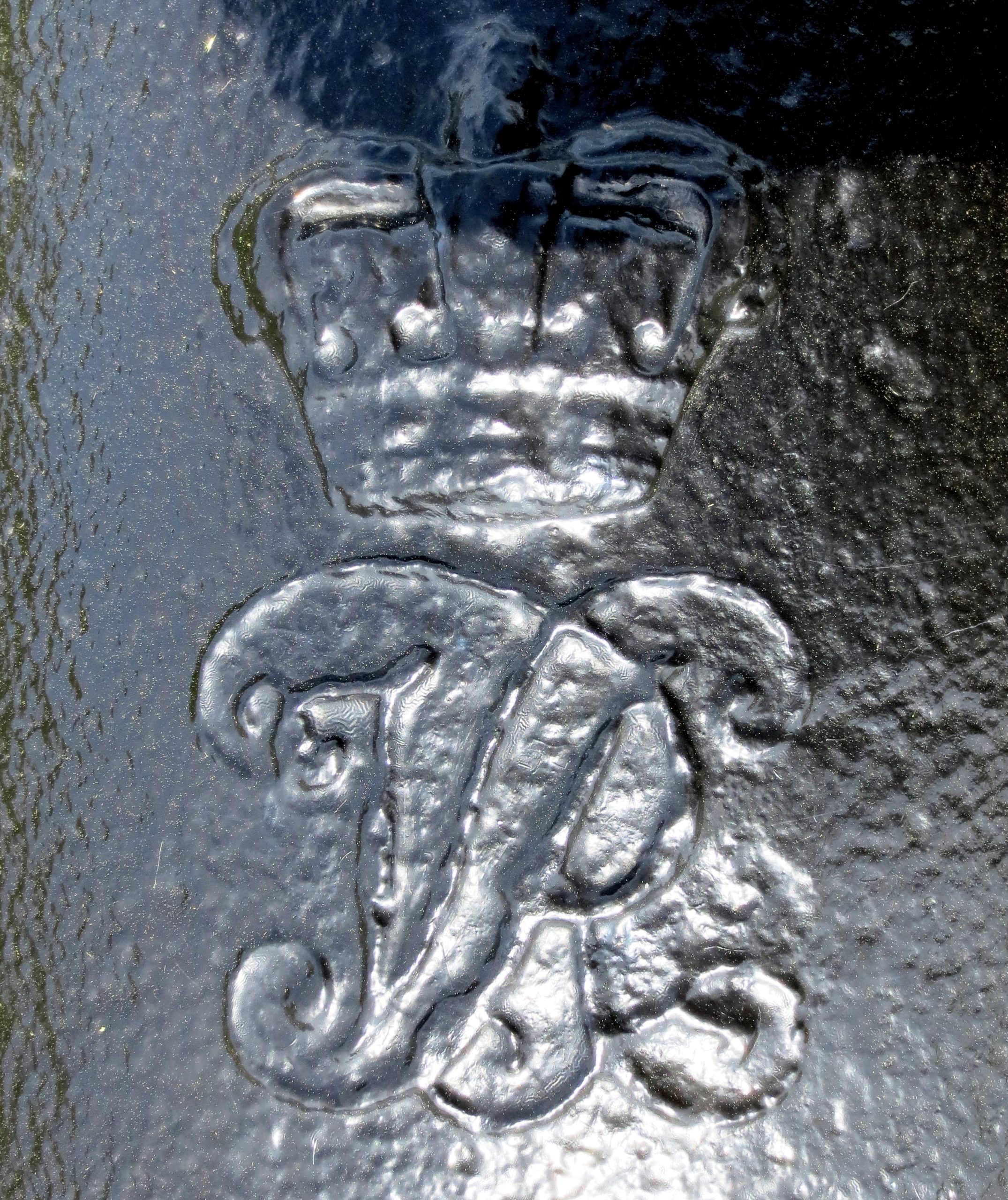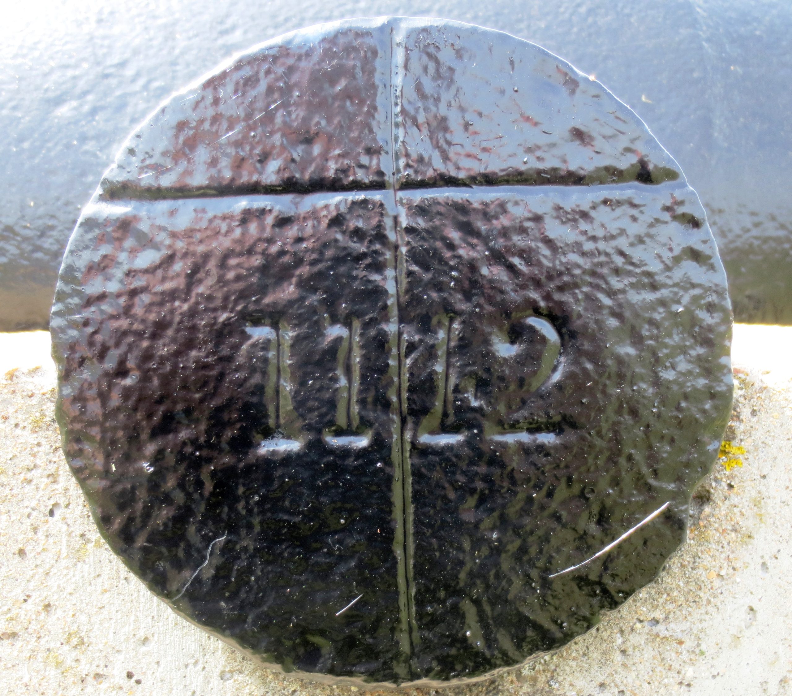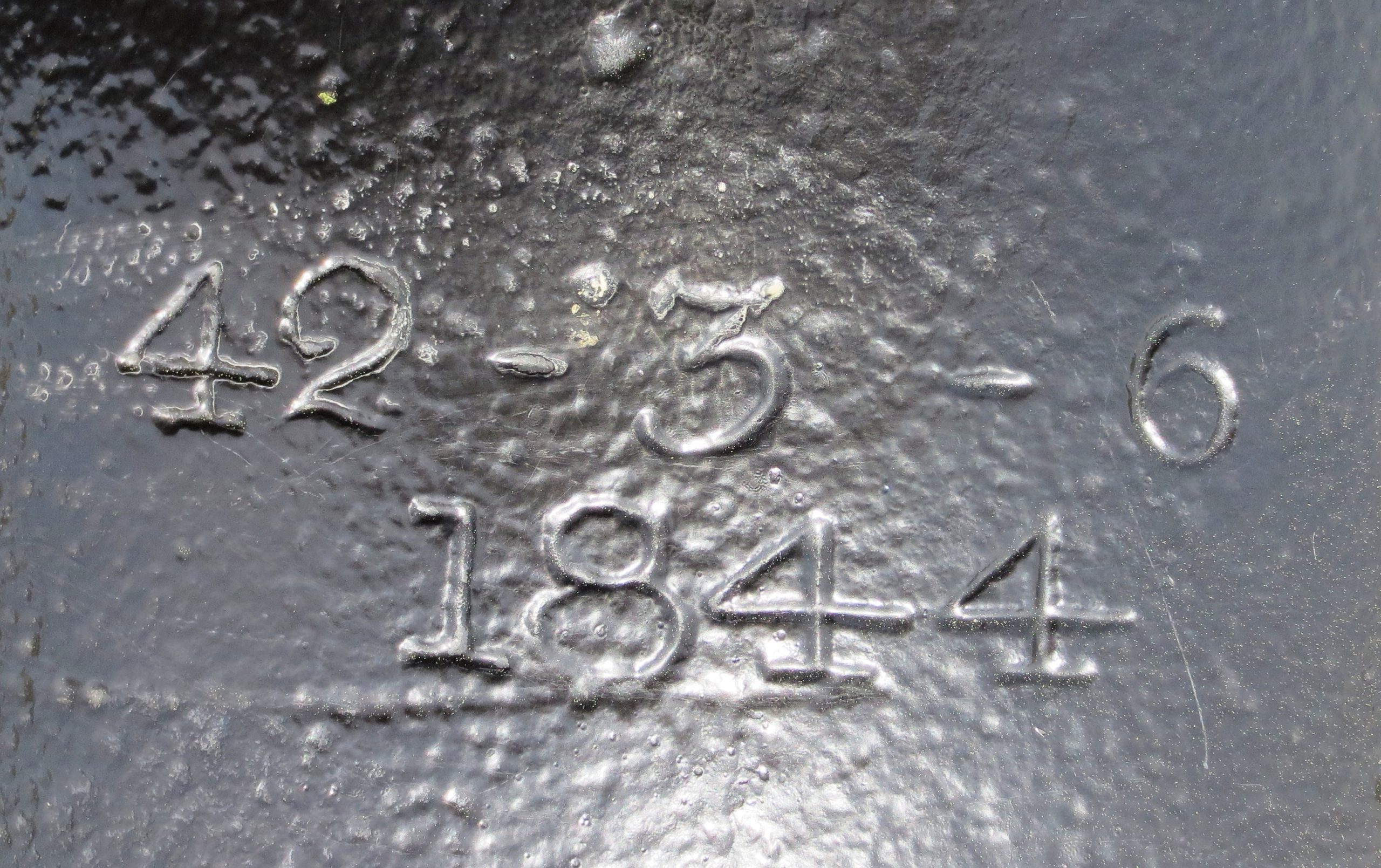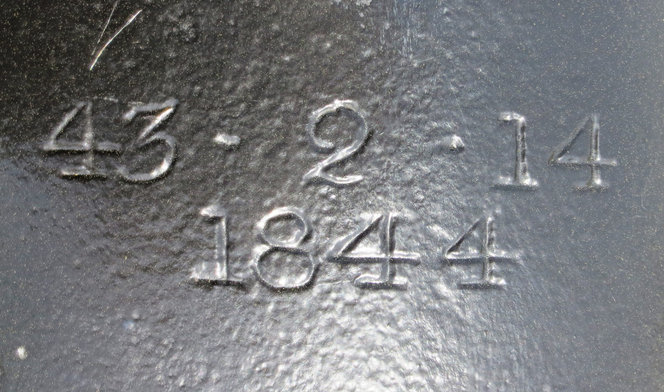 1844, (WCo) on left trunnion, (Serial No. 1112) on right trunnion, Queen Victoria cypher, broad arrow mark, mounted on a concrete carriage, No. 3 of 6 guns in Loyalist Park.