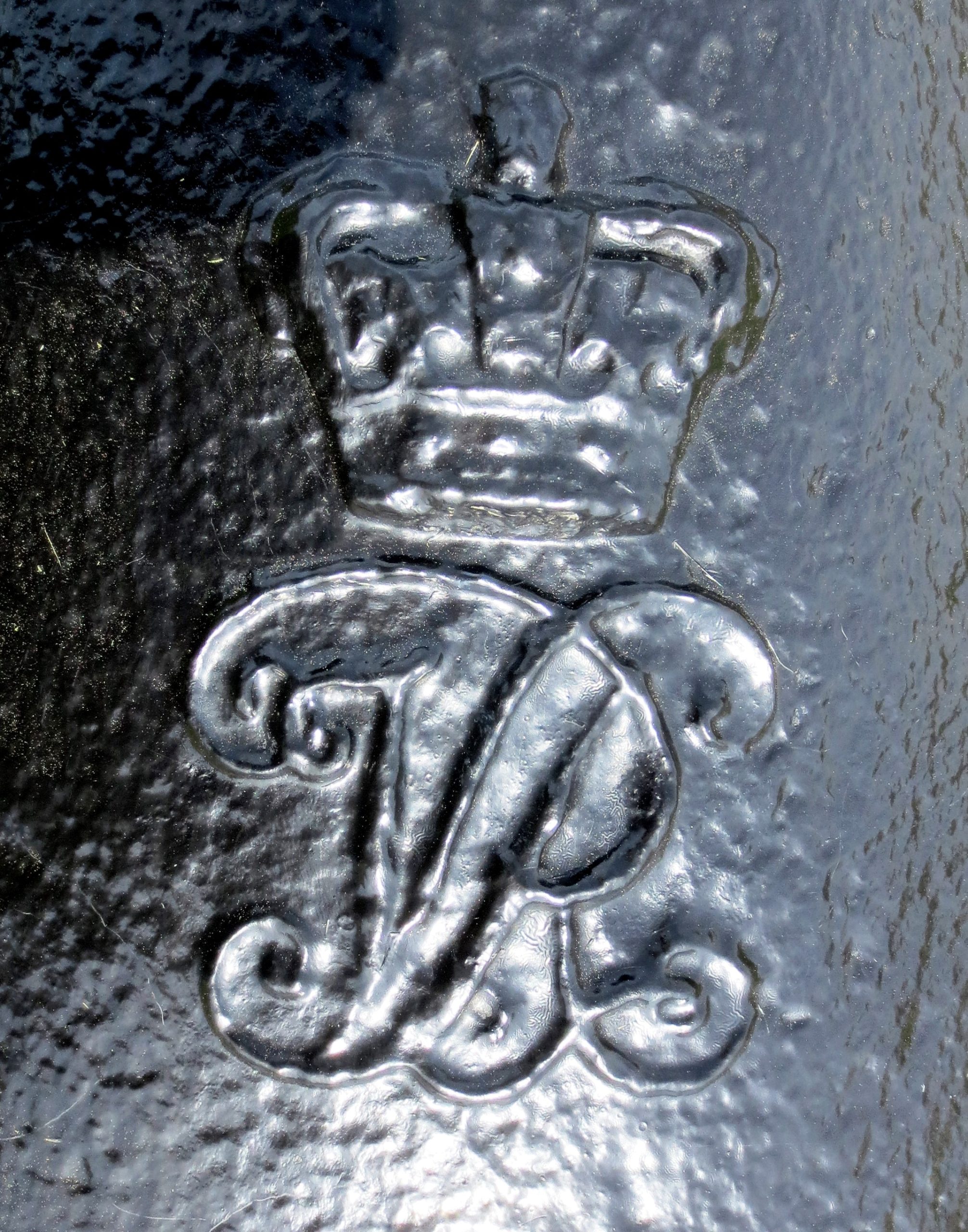 Dundas 32/64-pounder 58-cwt Converted Rifled Muzzleloading Gun, with Millar pattern breeching ring, converted from 32-pounder of 58 cwt, weight 59-1-0 (6,636 lbs), (RGF No. 238) on left trunnion, Queen Victoria cypher, mounted on a Naval gun carriage. No. 1 of 2, Digby Soldier’s cenotaph.